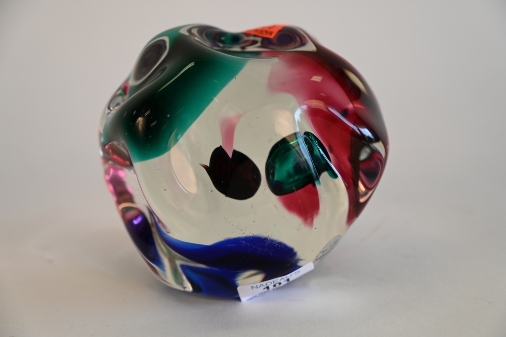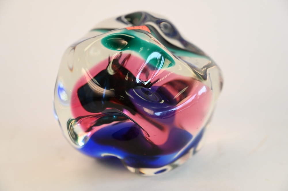 Lot 101: Salviati Murano Multi Colored Glass Orb, height 5 inches.