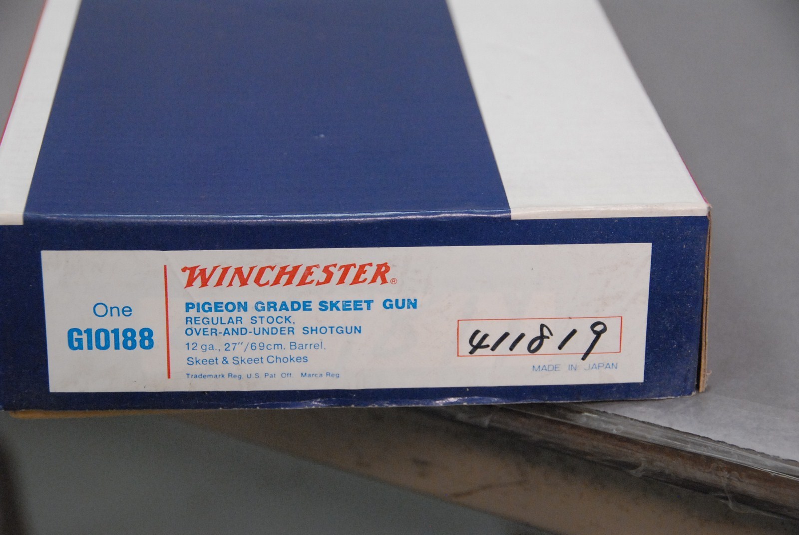 Winchester 101 shotgun, 12 gauge pigeon grade skeet gun, over/under 27 barrels, skeet and skeet chokes, new in box with original box still wrapped in paper. 49 SN-PK411819