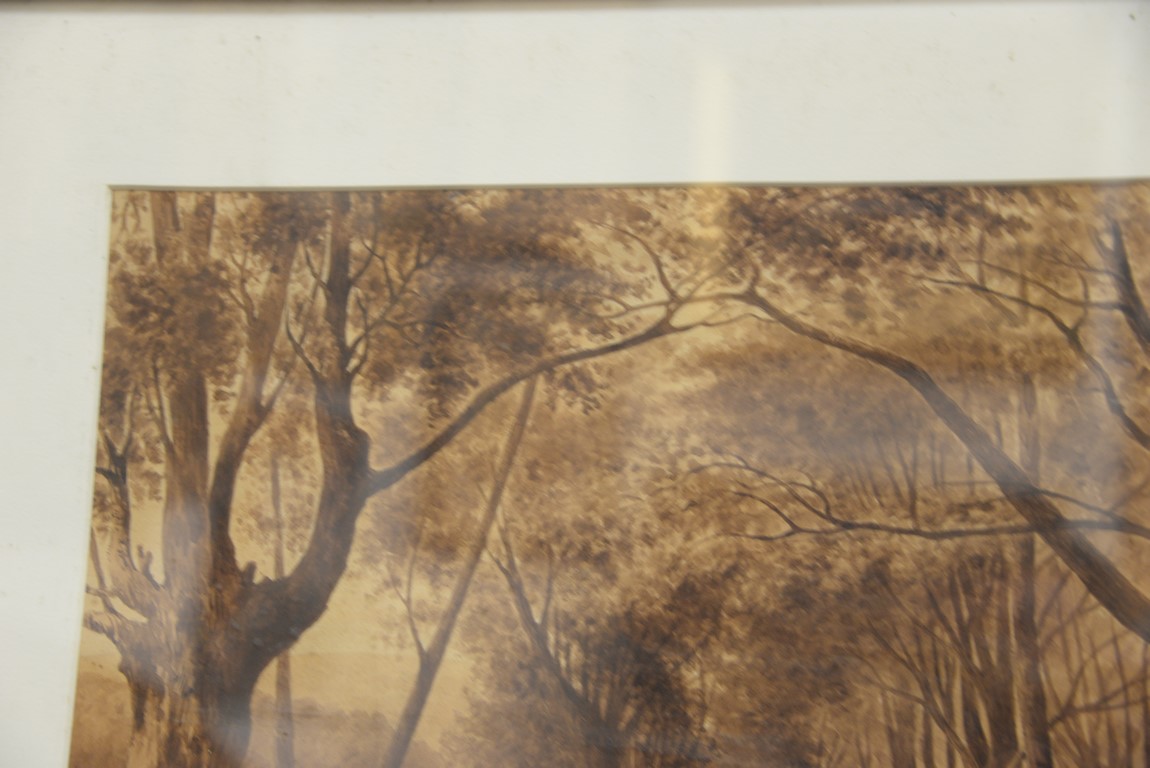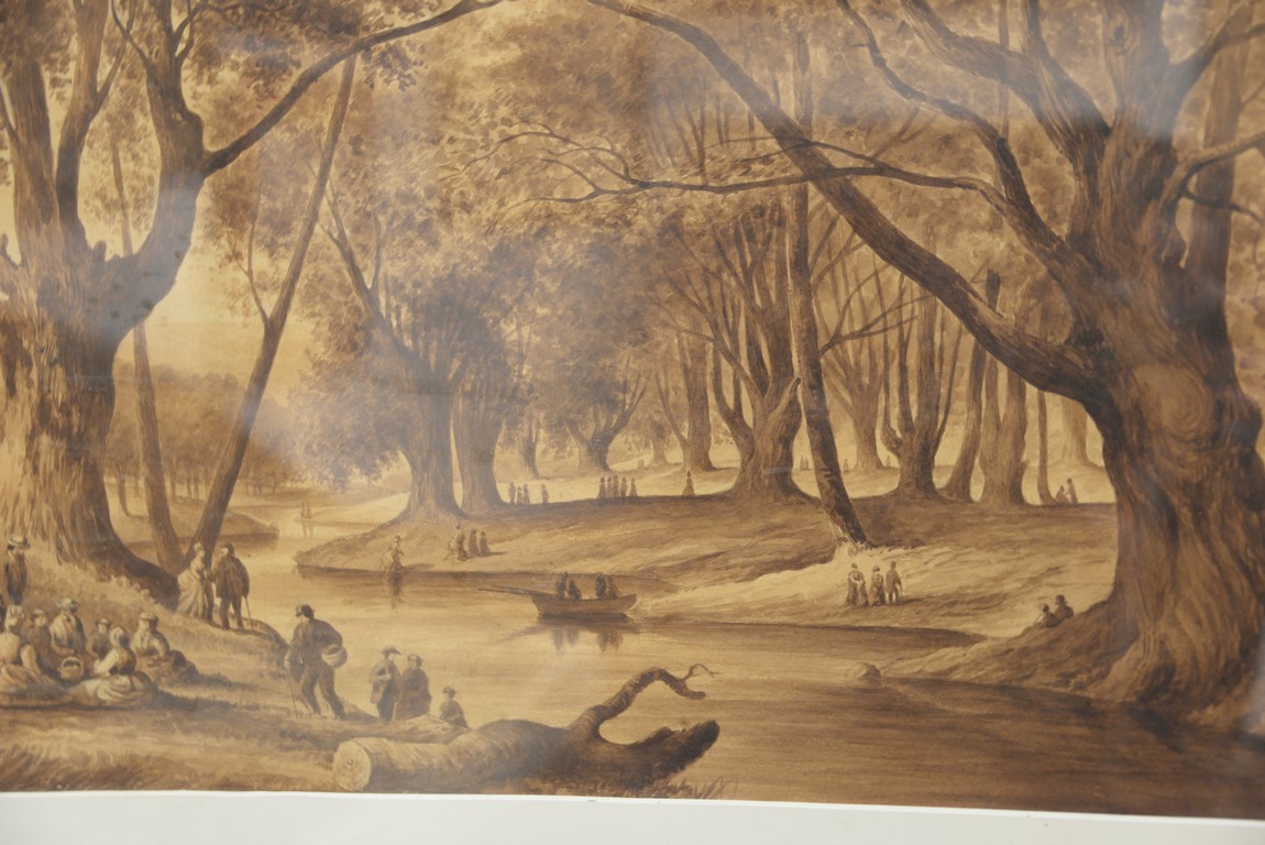 Lot 102: 19th Century Painting Picnic Along the River brown wash watercolor unsigned sight size: 13 1/2 x 19 1/4