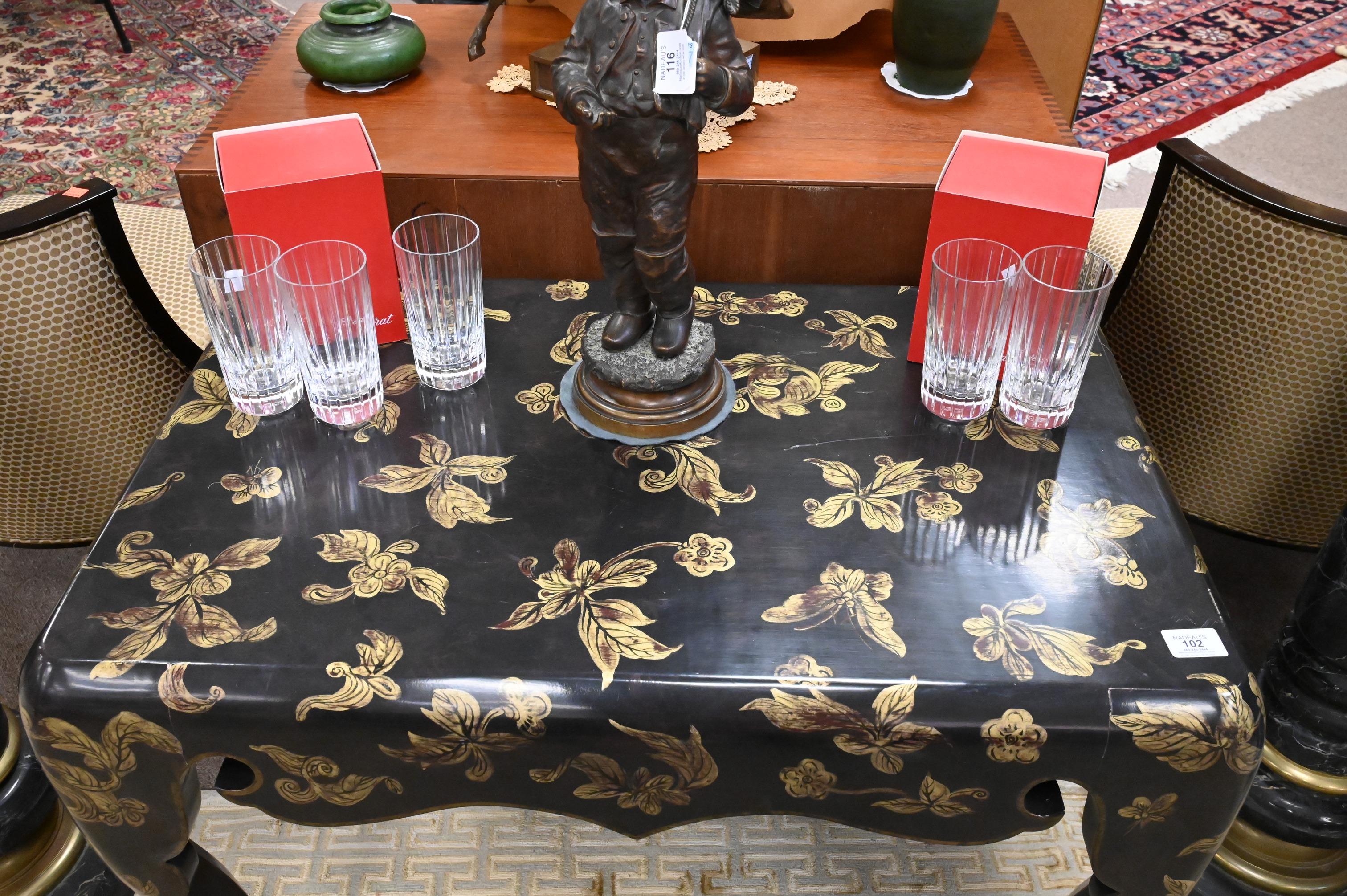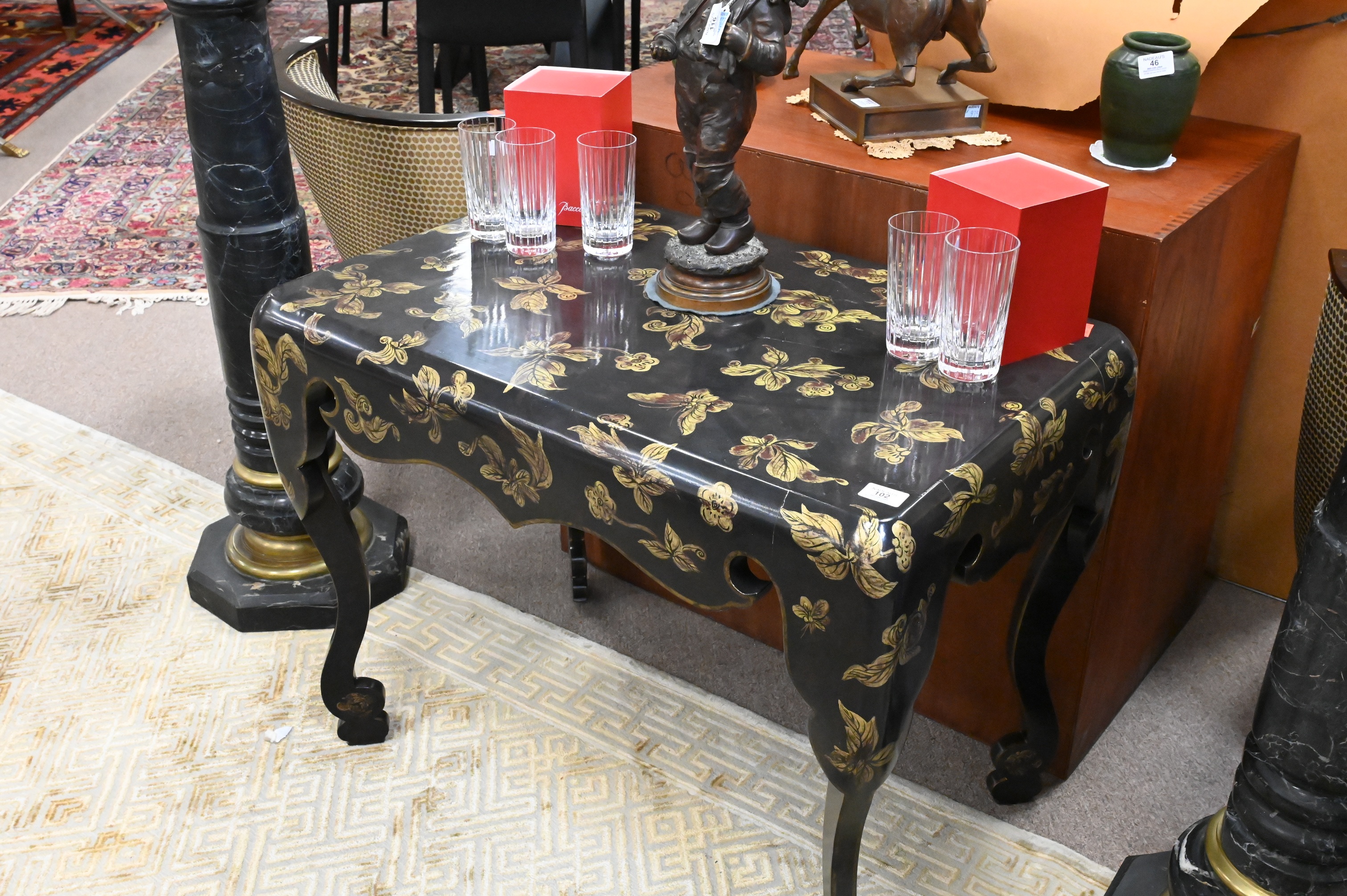 Lot 102: Black Lacquer and Gilt Deco Style Table