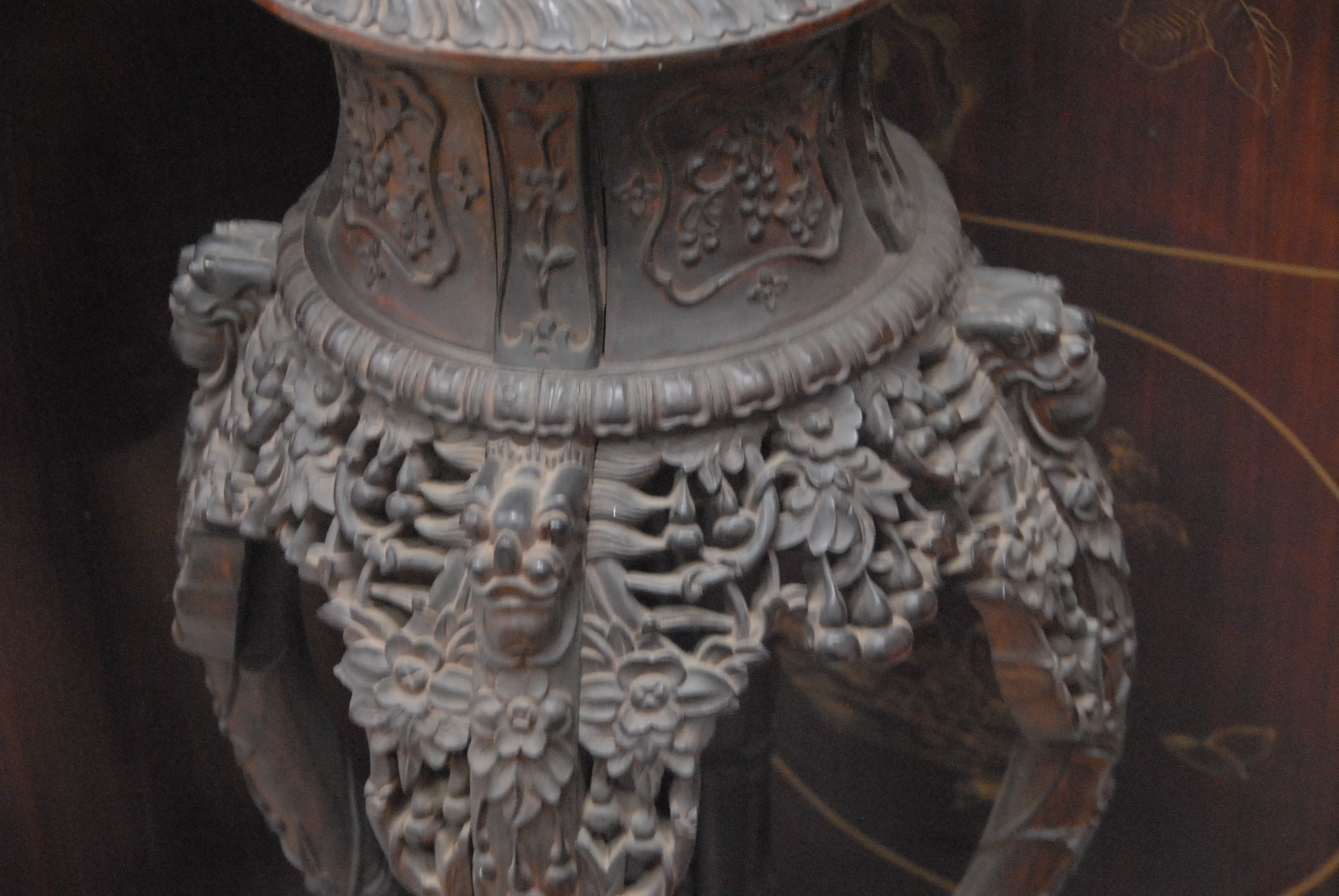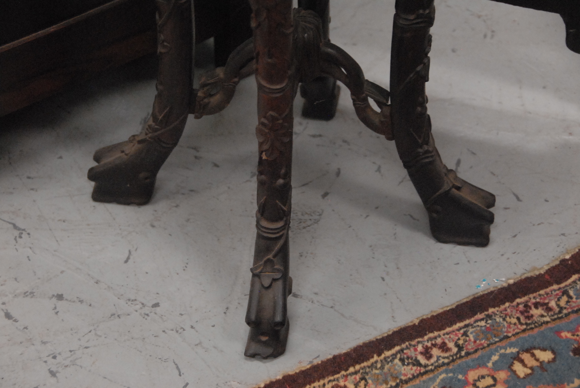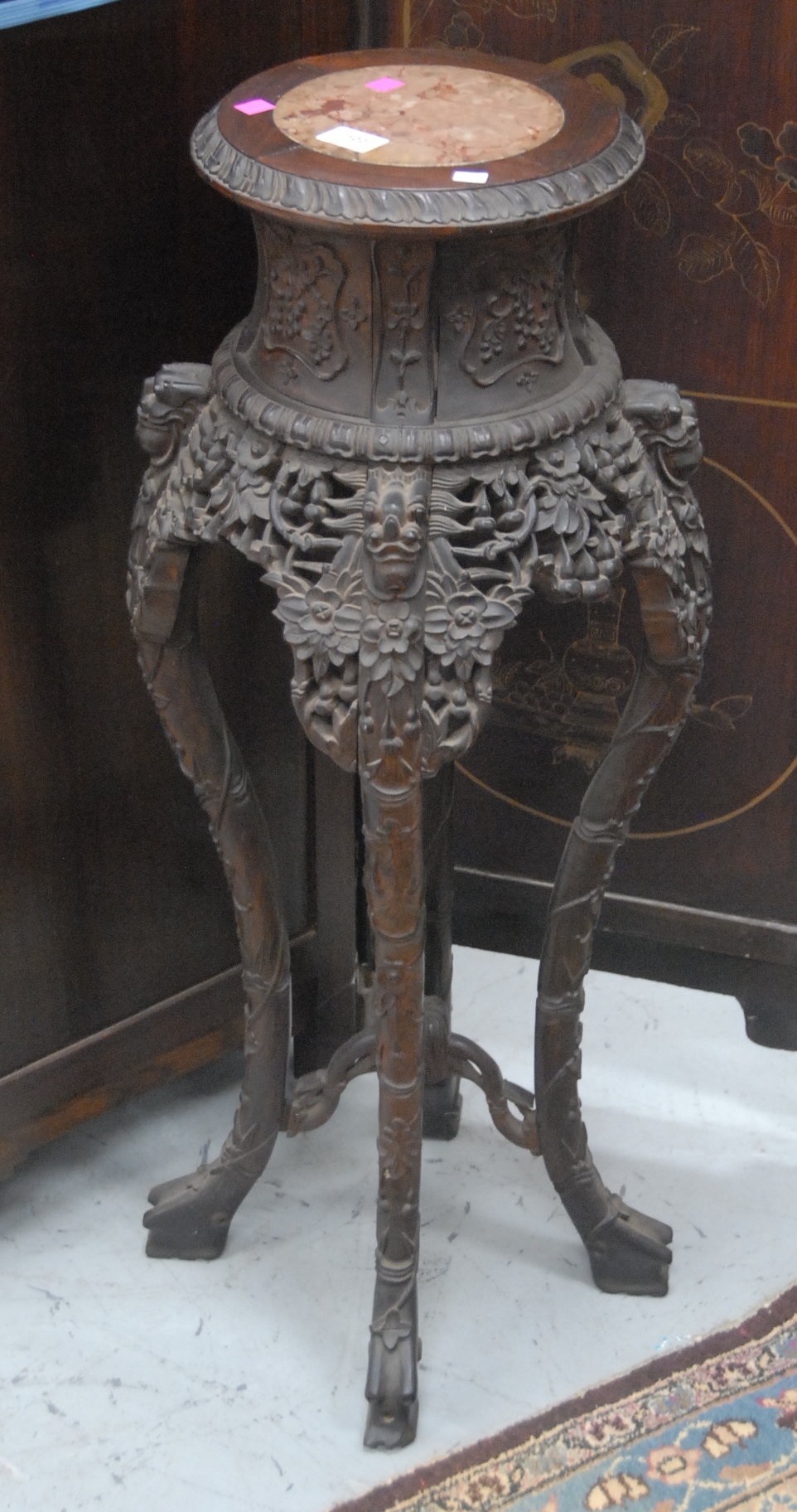 Chinese stand with inset marble top. ht. 37 1/2 in. dia. 11 in.