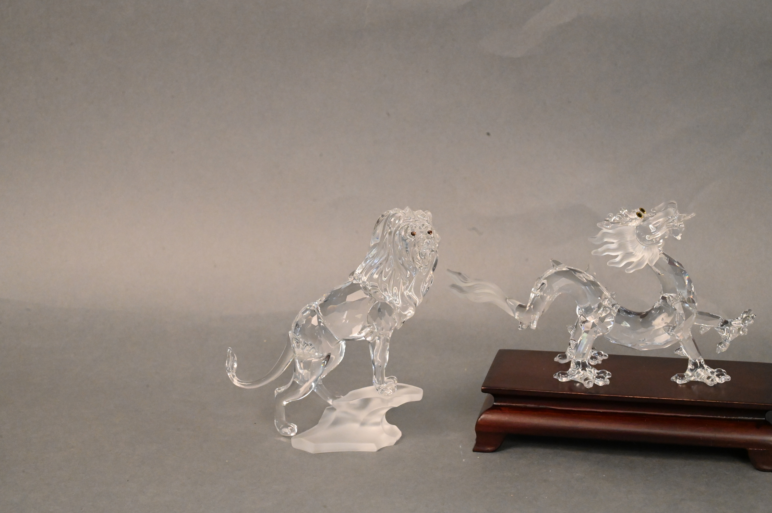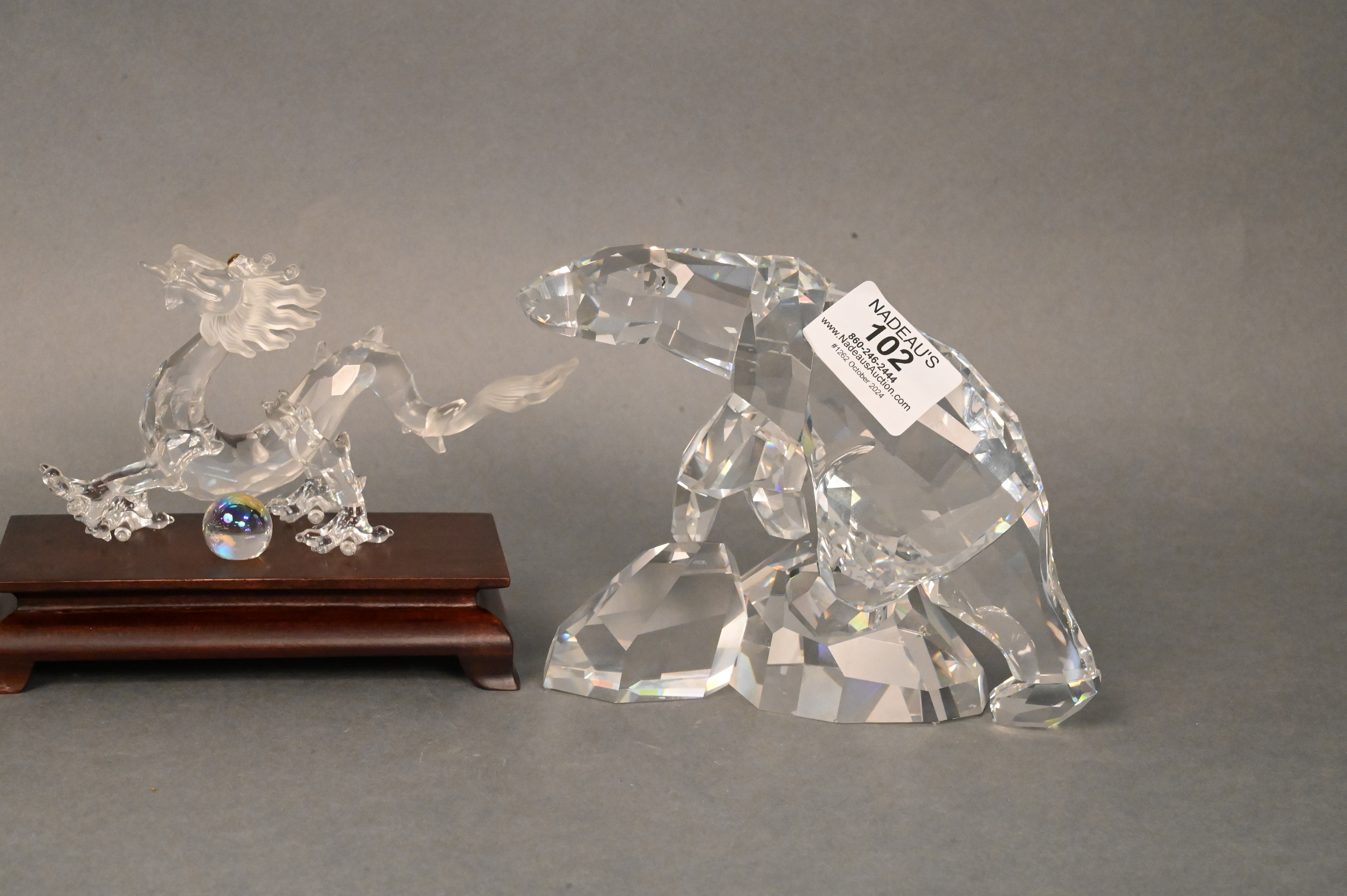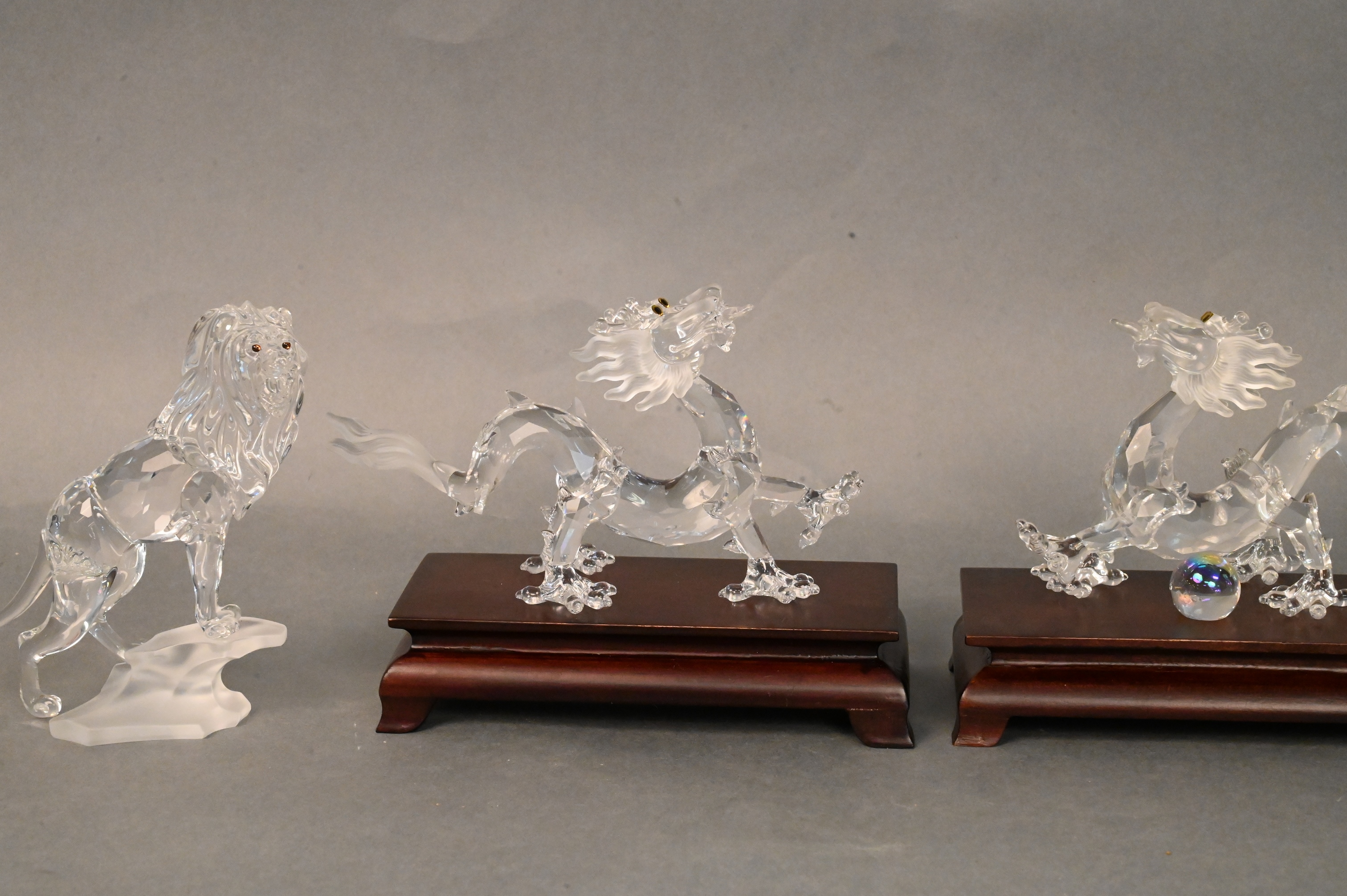 roaring lion on rock, polar bear Nanuc, two zodiac dragons one having broken ear and the other missing marble ball, each in original presentation box with certificate of authenticity