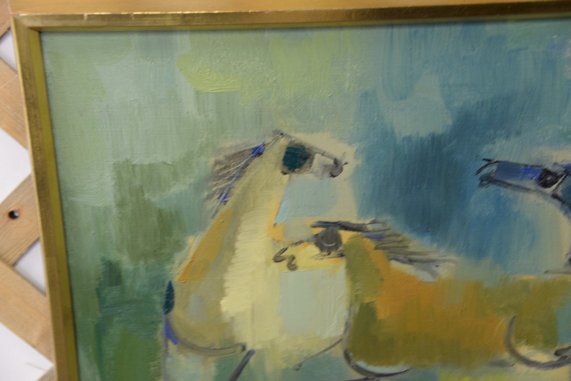 Lot 102: John Chin Young 1909-1997 oil on canvas of five horses running signed lower right John Young. 16 x 30