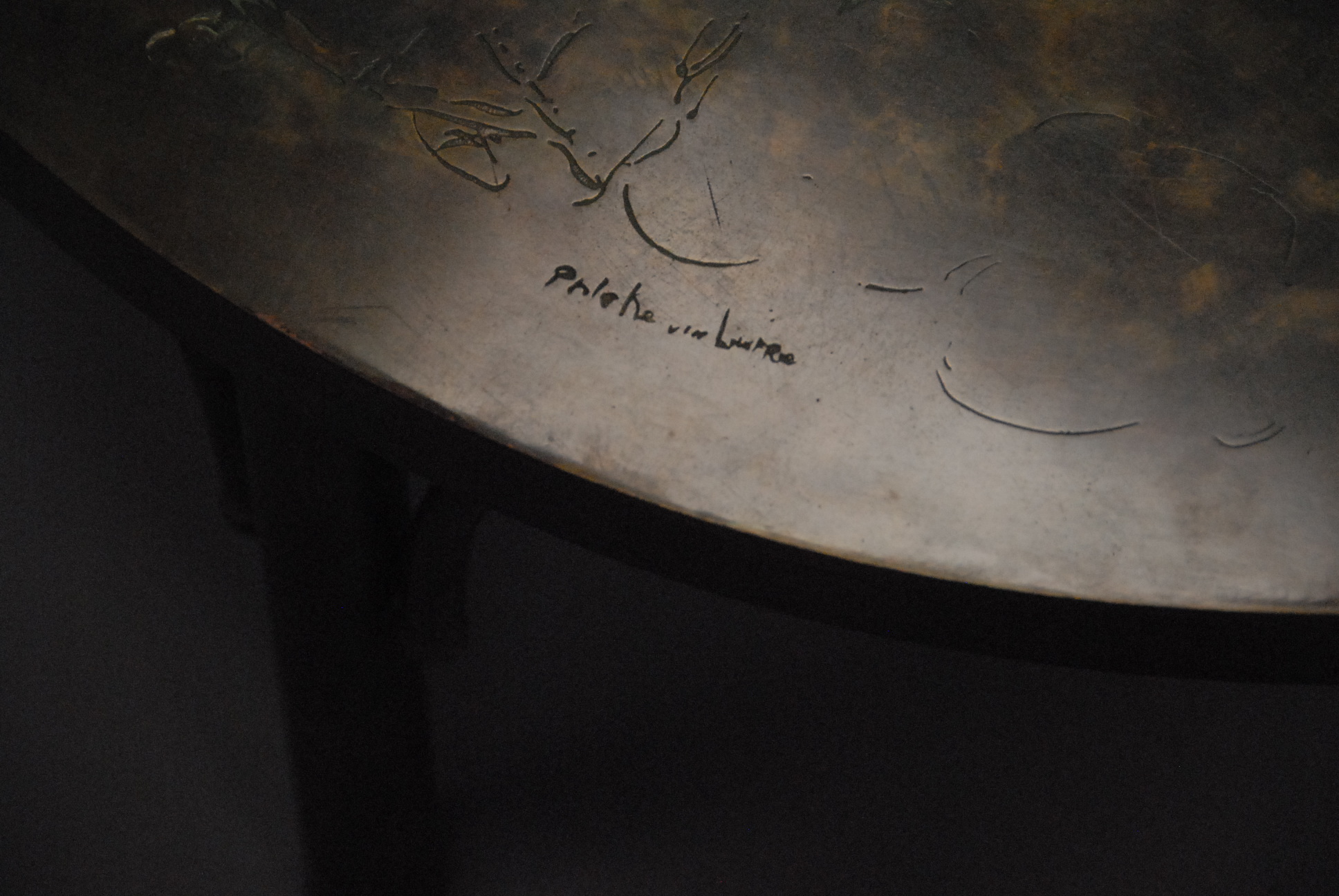 Philip & Kelvin LaVerne bronze coffee table with classical romantic scenes.