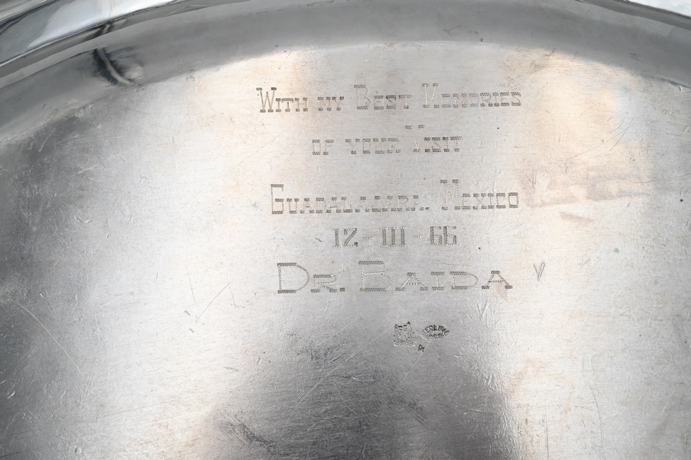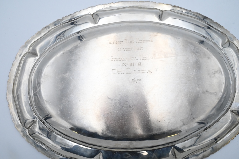Lot 102: Sterling Silver Oval Tray, length 18 1/2 inches, 35.6 t.oz.