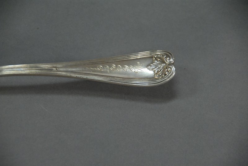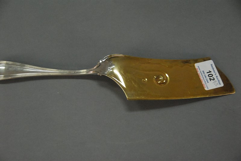 Lot 102: Tiffany & Co. fish slice with vermeil blade, monogrammed. lg. 12in. 5.6 t oz.
