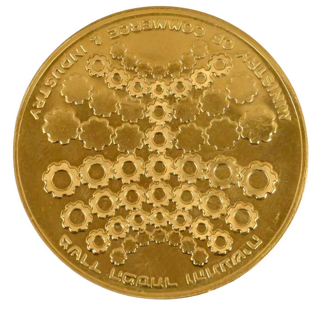 Lot 103: 1975 Ministry of Commerce and Industry for the Israeli Government by Diamond Industry 22k Gold Medal