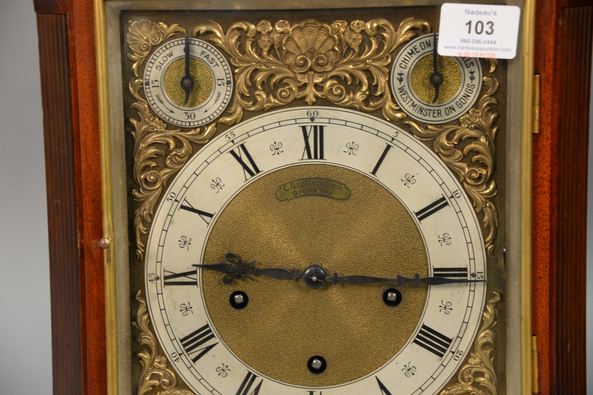 C. Grottendieck Bruxelles mahogany chime mantle clock. ht. 18 1/2 in.
