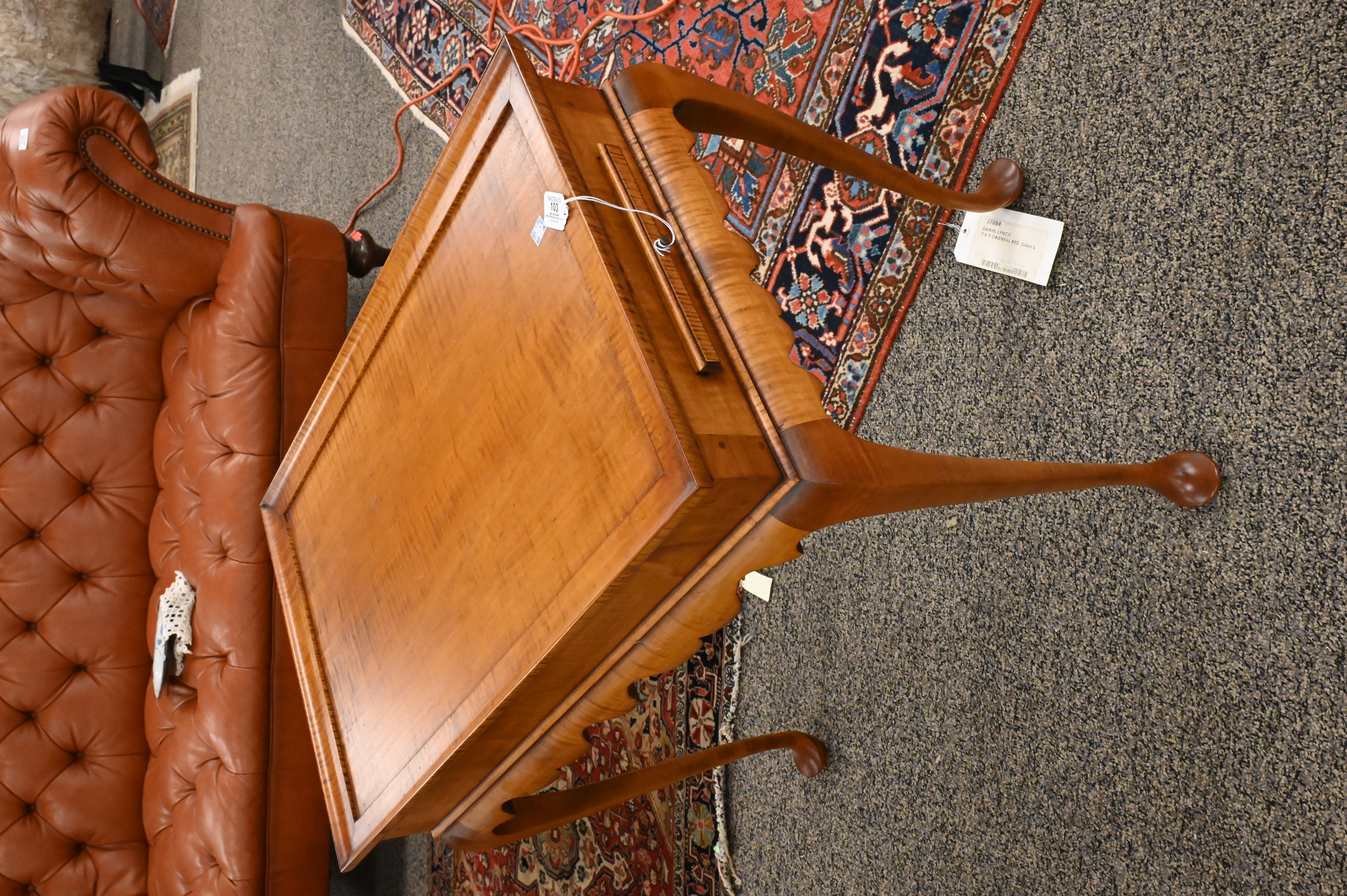 Lot 103: D.R. Dimes Tiger Maple Queen Anne Style Tea Table