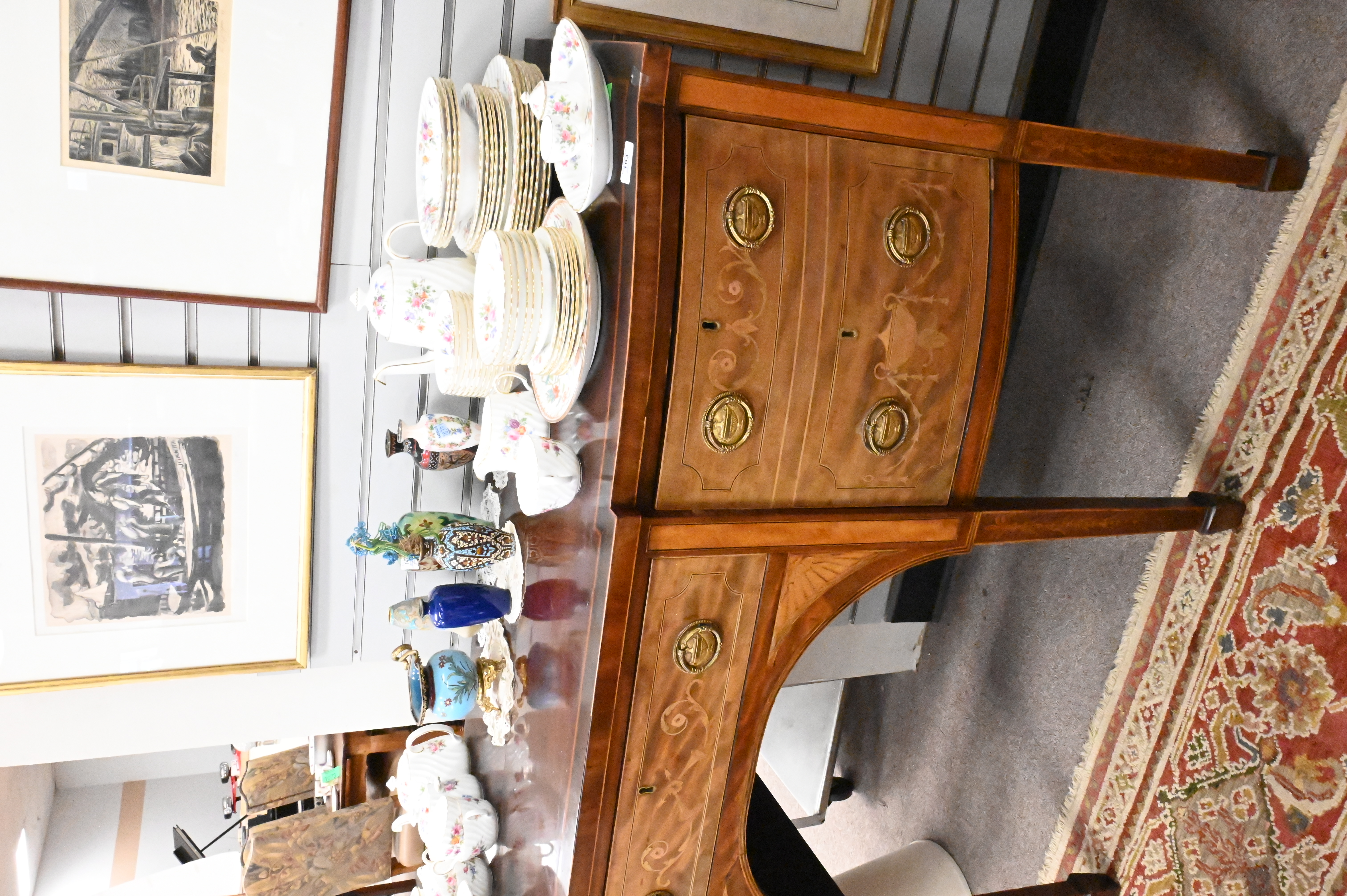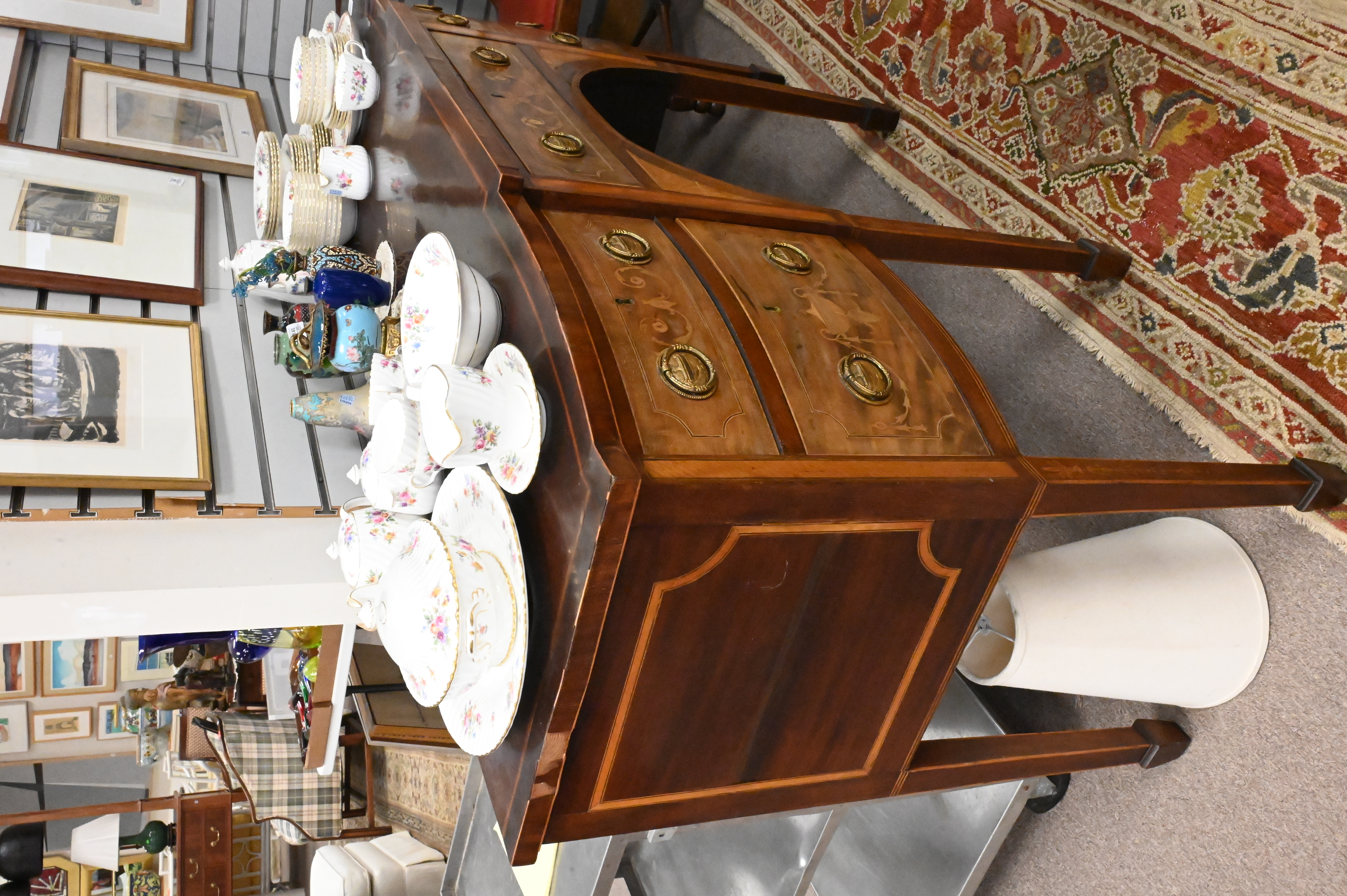 having urn and marquetry inlays with one bottom drawer set on square tapered legs, 19th century, front sun faded
