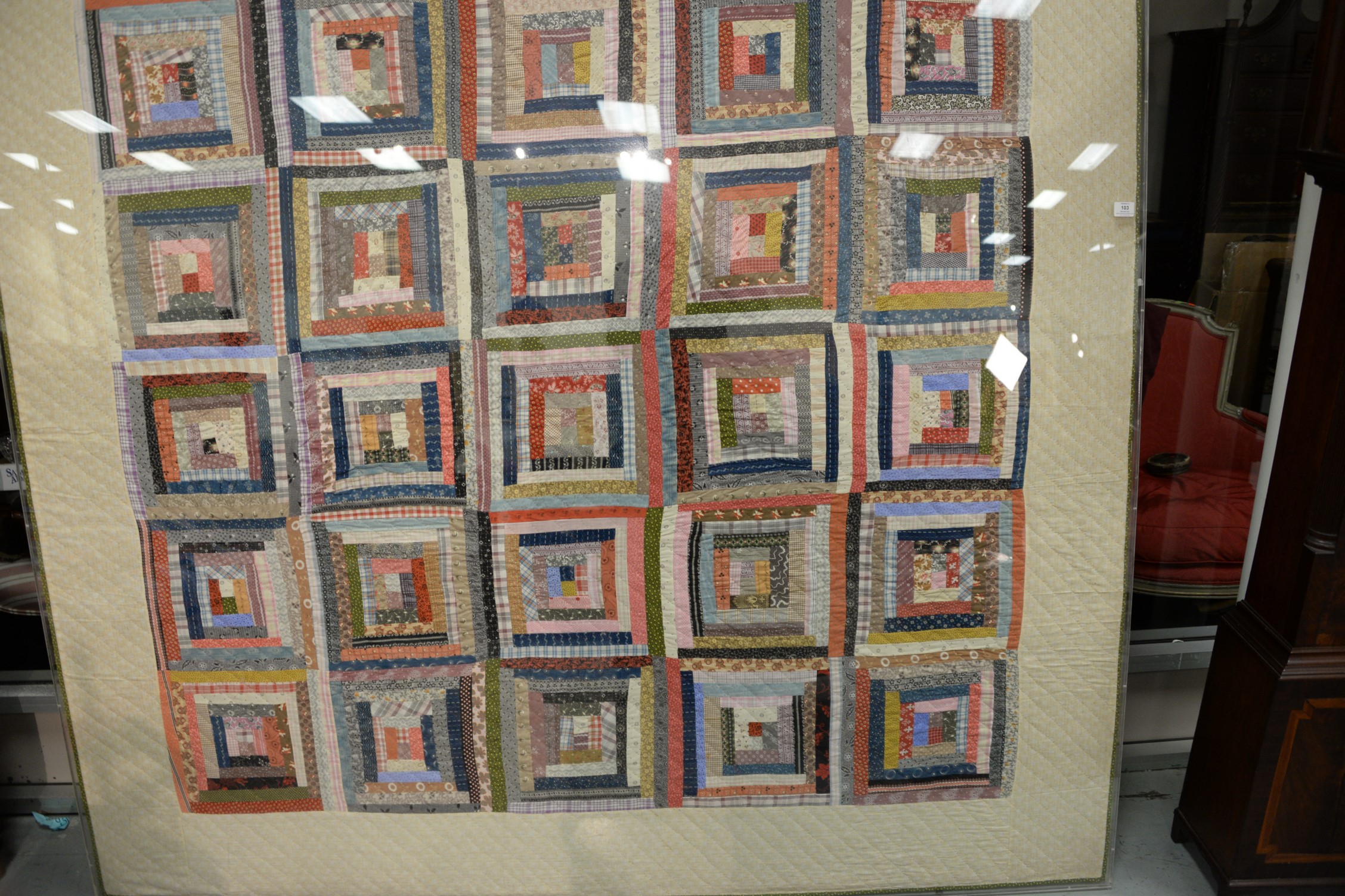 Late 19th century quilt, Log Cabin Mennonite circa 1880 Lancaster County P.A., in plexiglass frame. 78 x 83 Provenance: Property from Credit Suisse’s Americana Collection