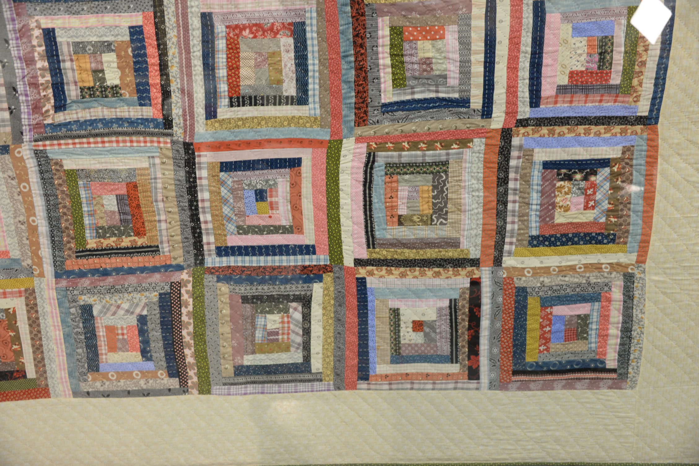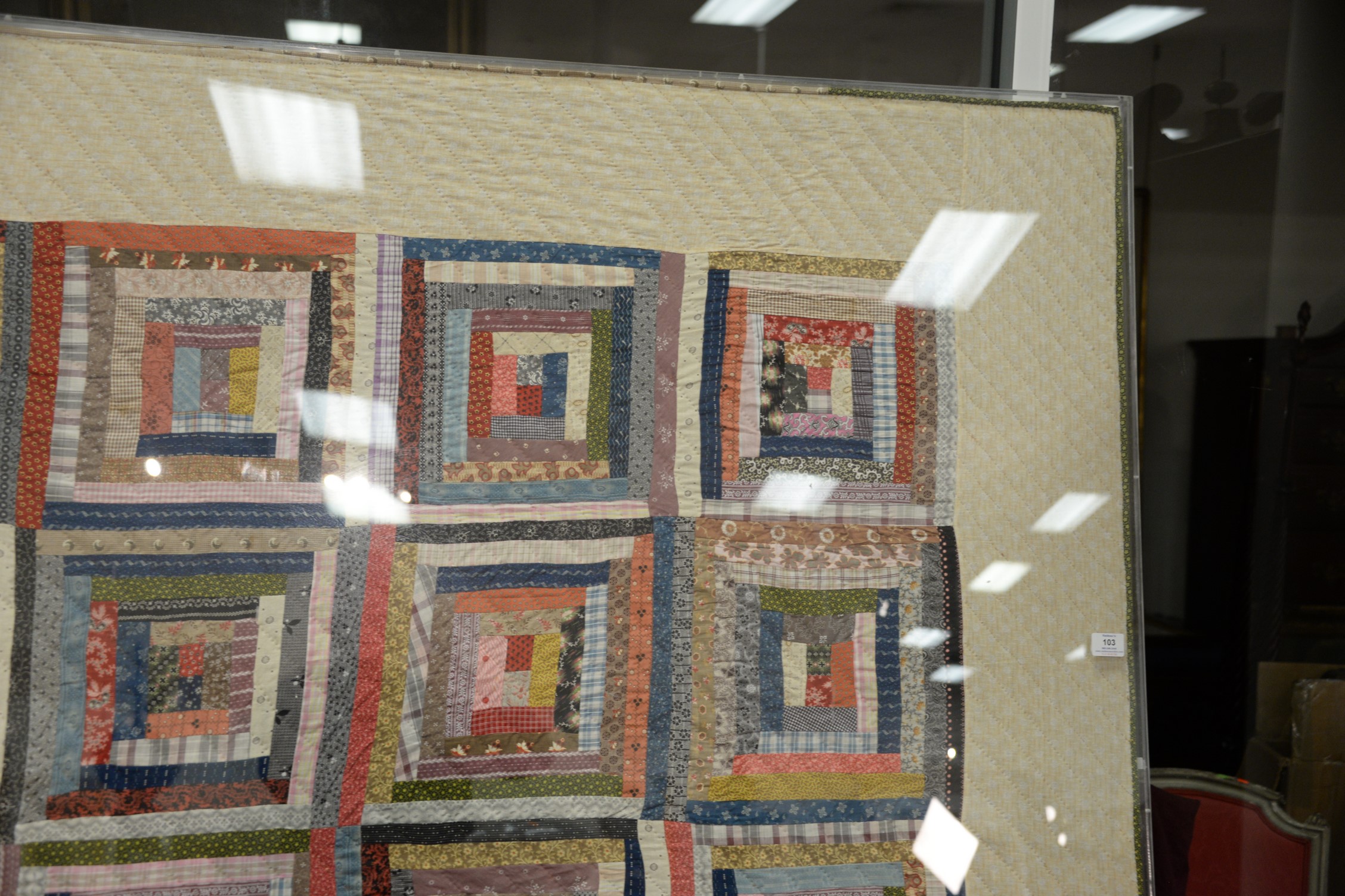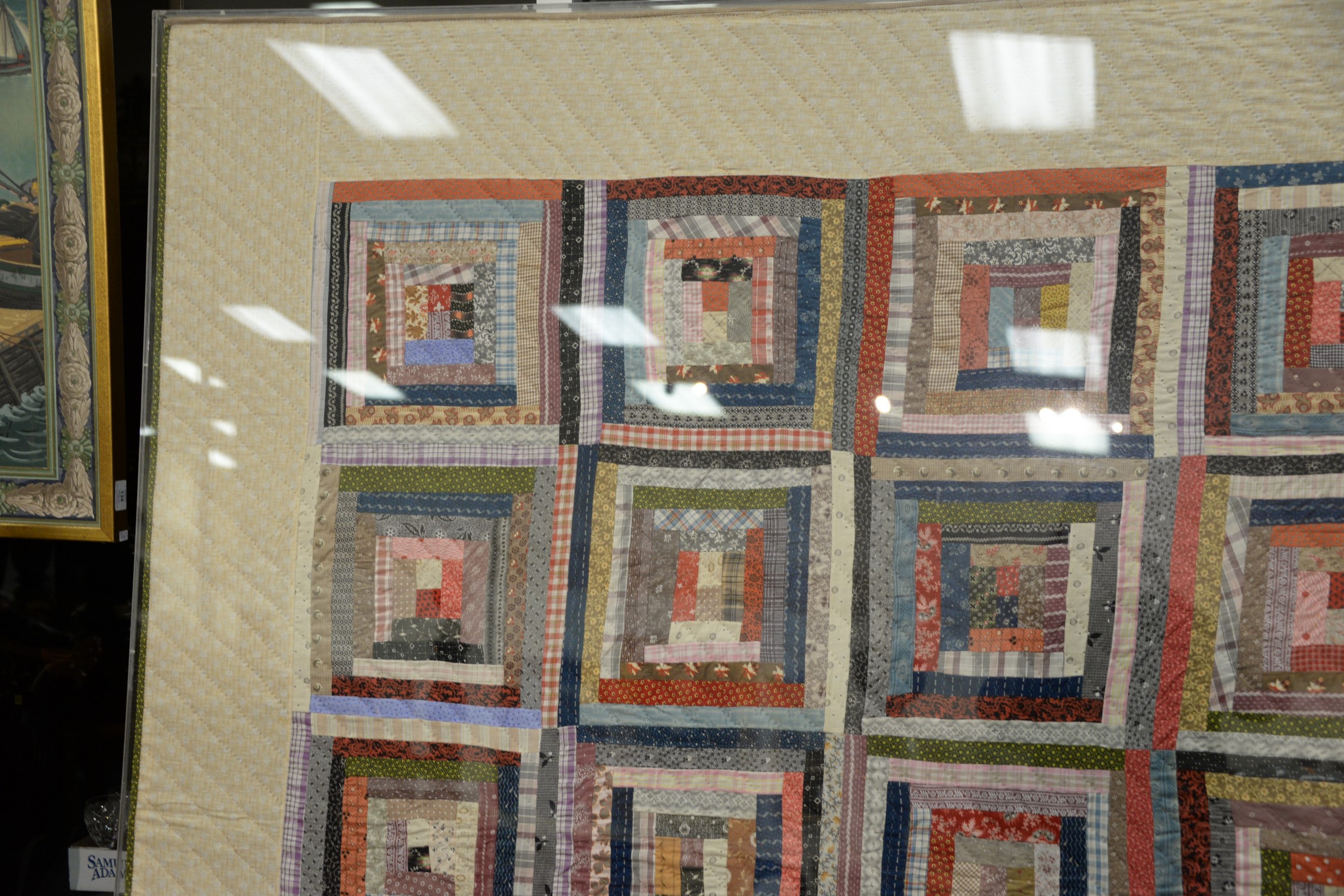 Lot 103: Late 19th century quilt, Log Cabin Mennonite circa 1880 Lancaster County P.A., in plexiglass frame. 78 x 83 Provenance: