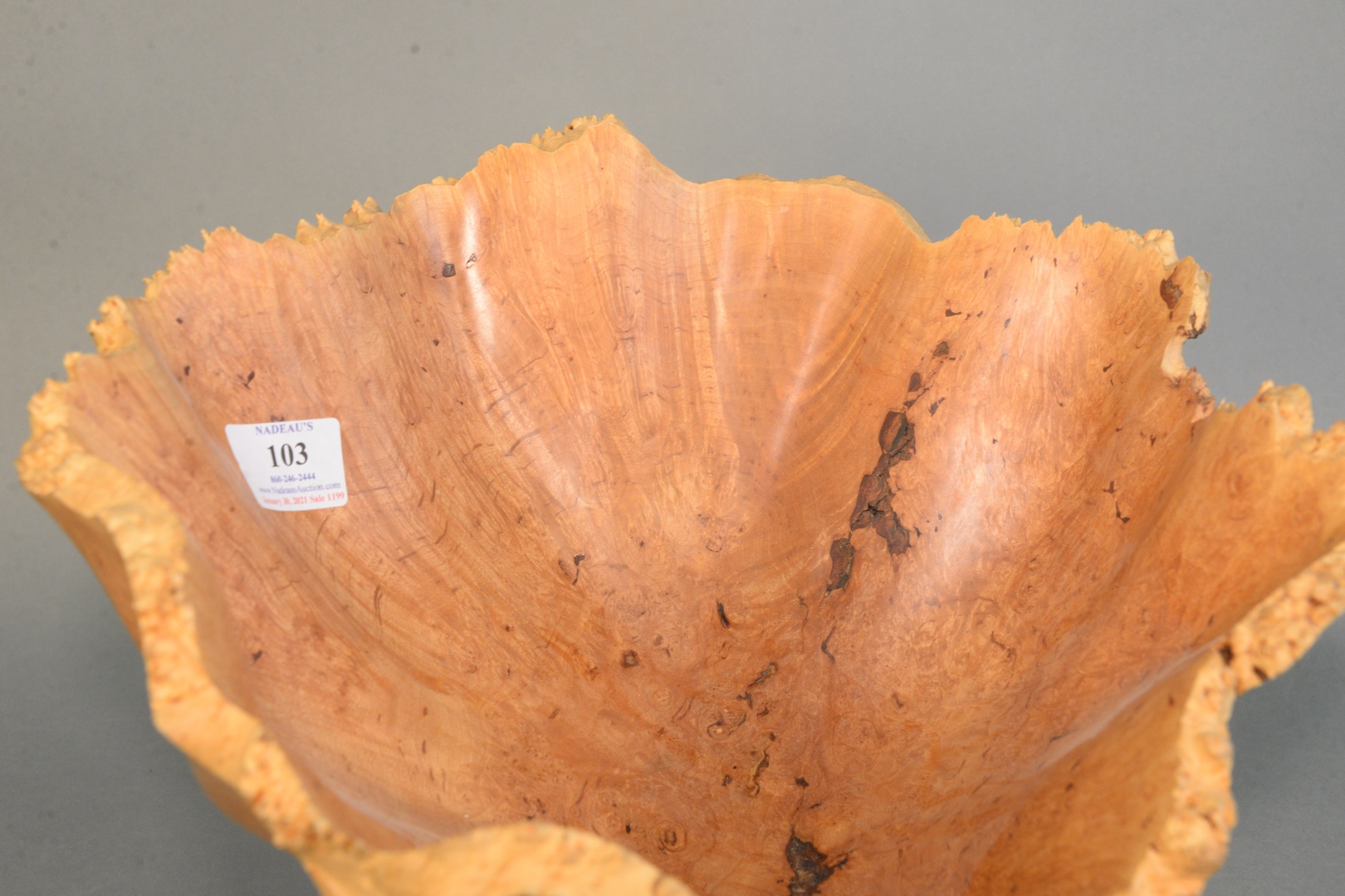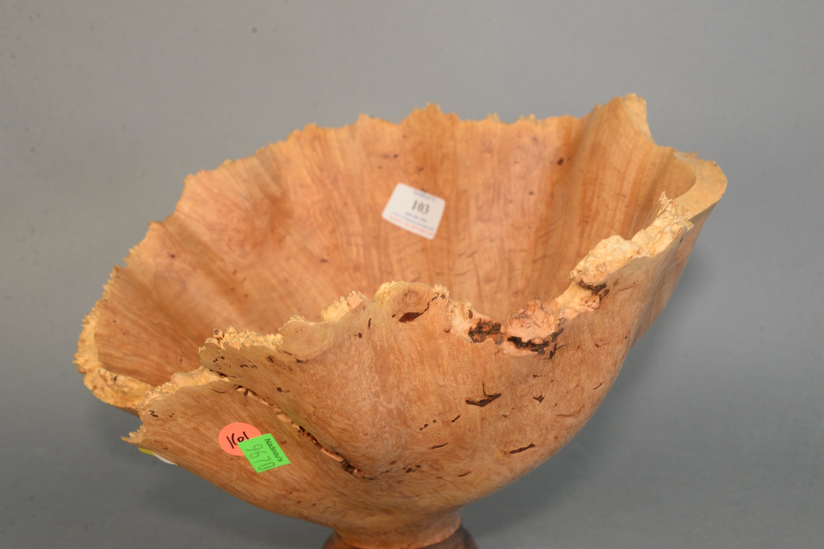 Lot 103: Mark Taylor American, 20th Century Freeform bowl on pedestal, turned maple burl wood, signed and inscribed on the underside of th…
