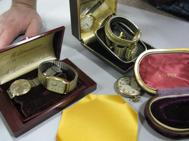 Nine watches, seven men’s wristwatches, pocket watch and ladies’ wristwatch, to include Vintage Hamilton’s.