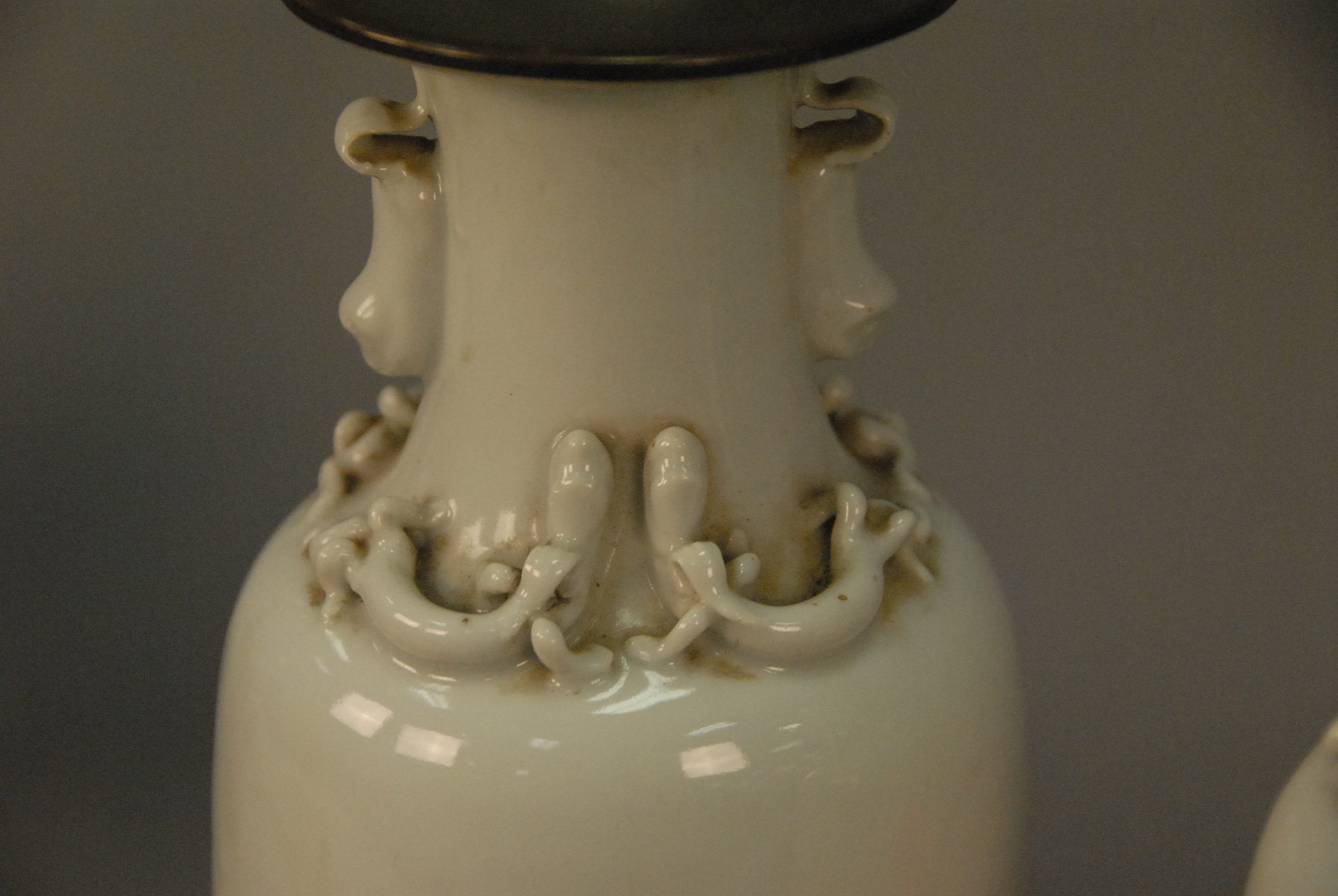 Pair of Chinese vases made into table lamps one as is.