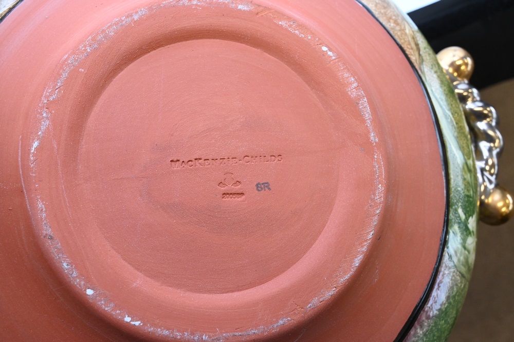 Ten Piece Mackenzie-Childs Group, to include large covered center serving tureen, six eater glasses, along with three glass pieces, serving tureen height 10 inches.