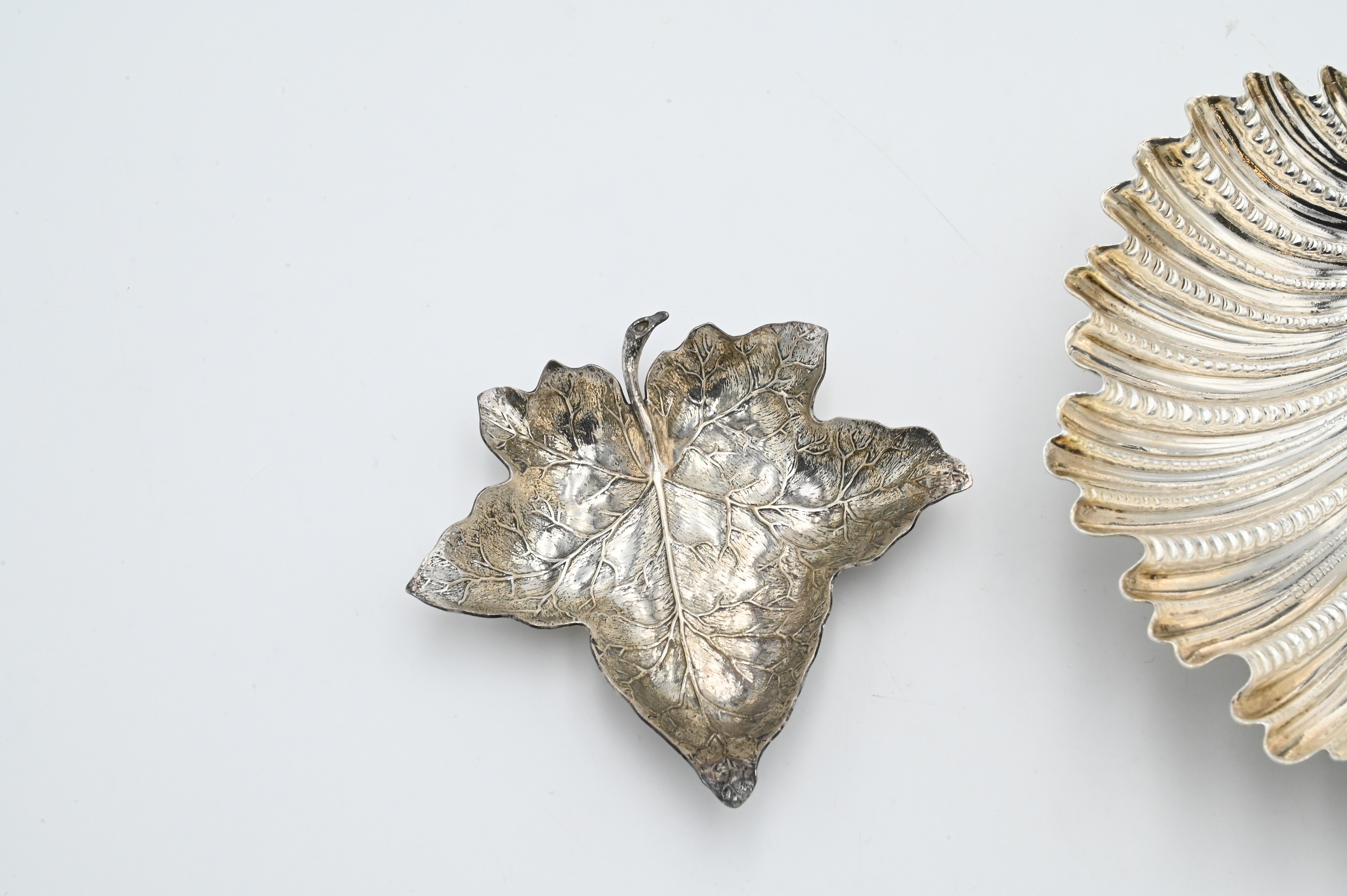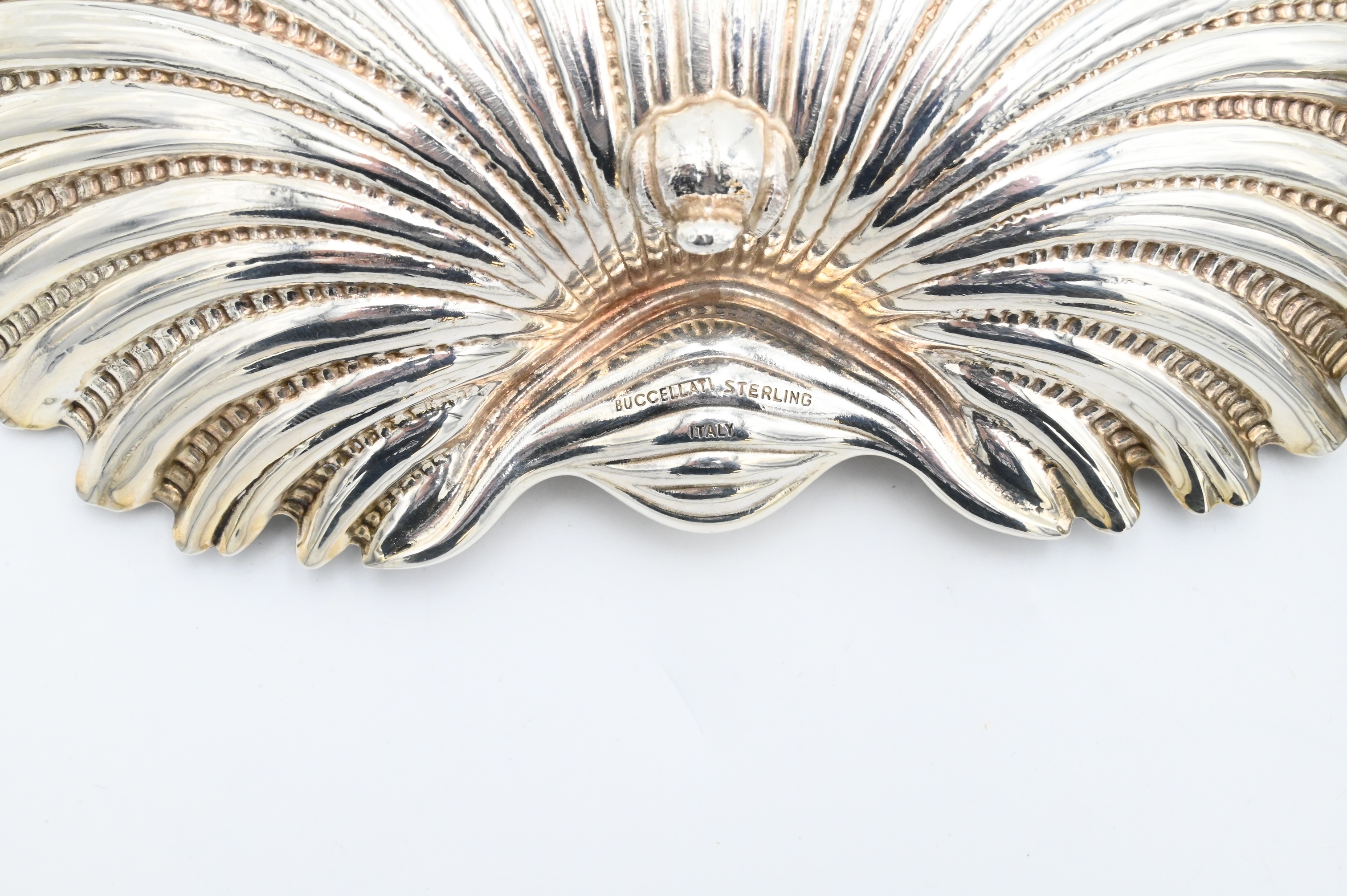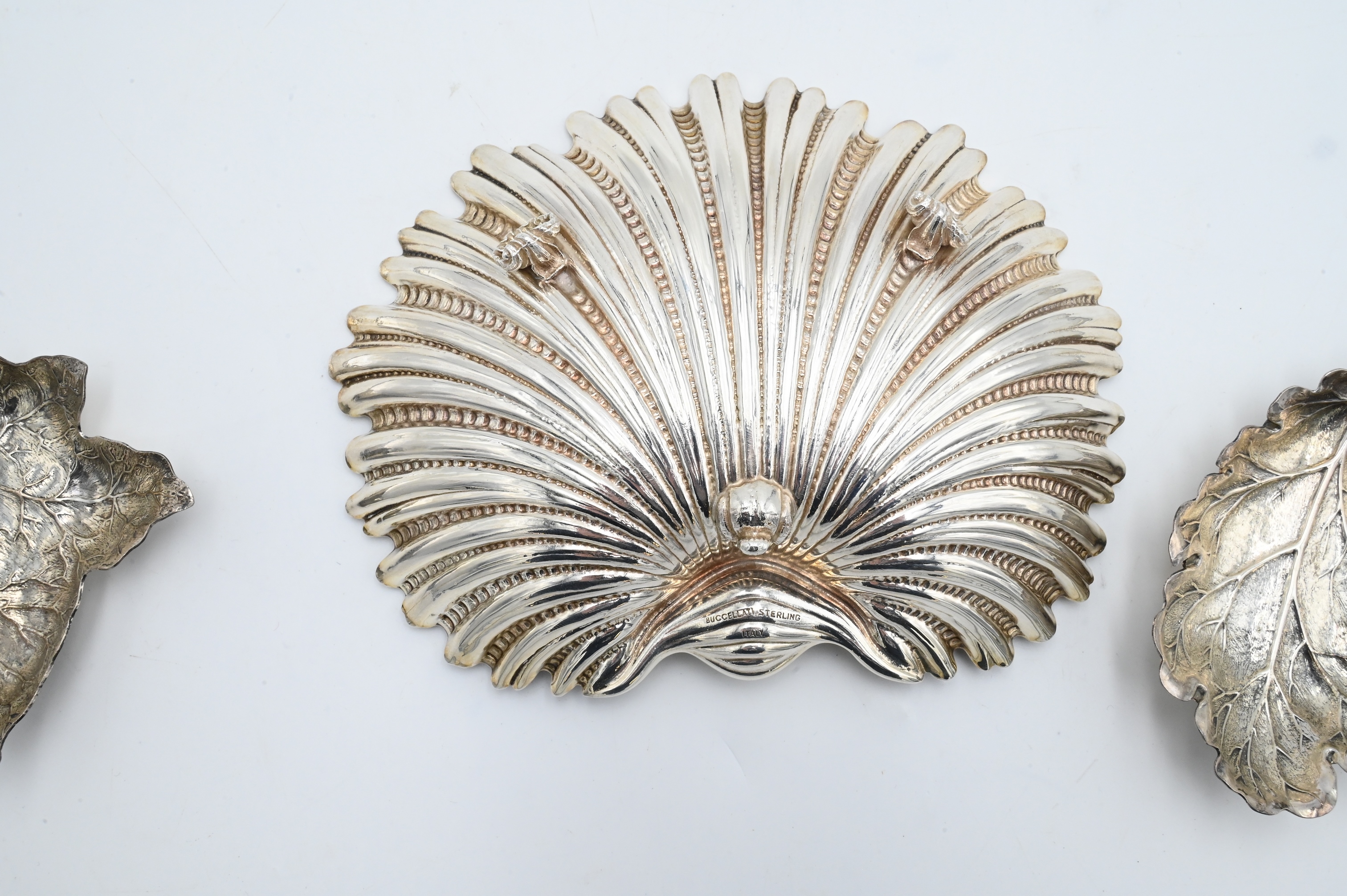 to include shell dish set on shell feet, and two leaf form dishes each marked Buccellati Italy Sterling