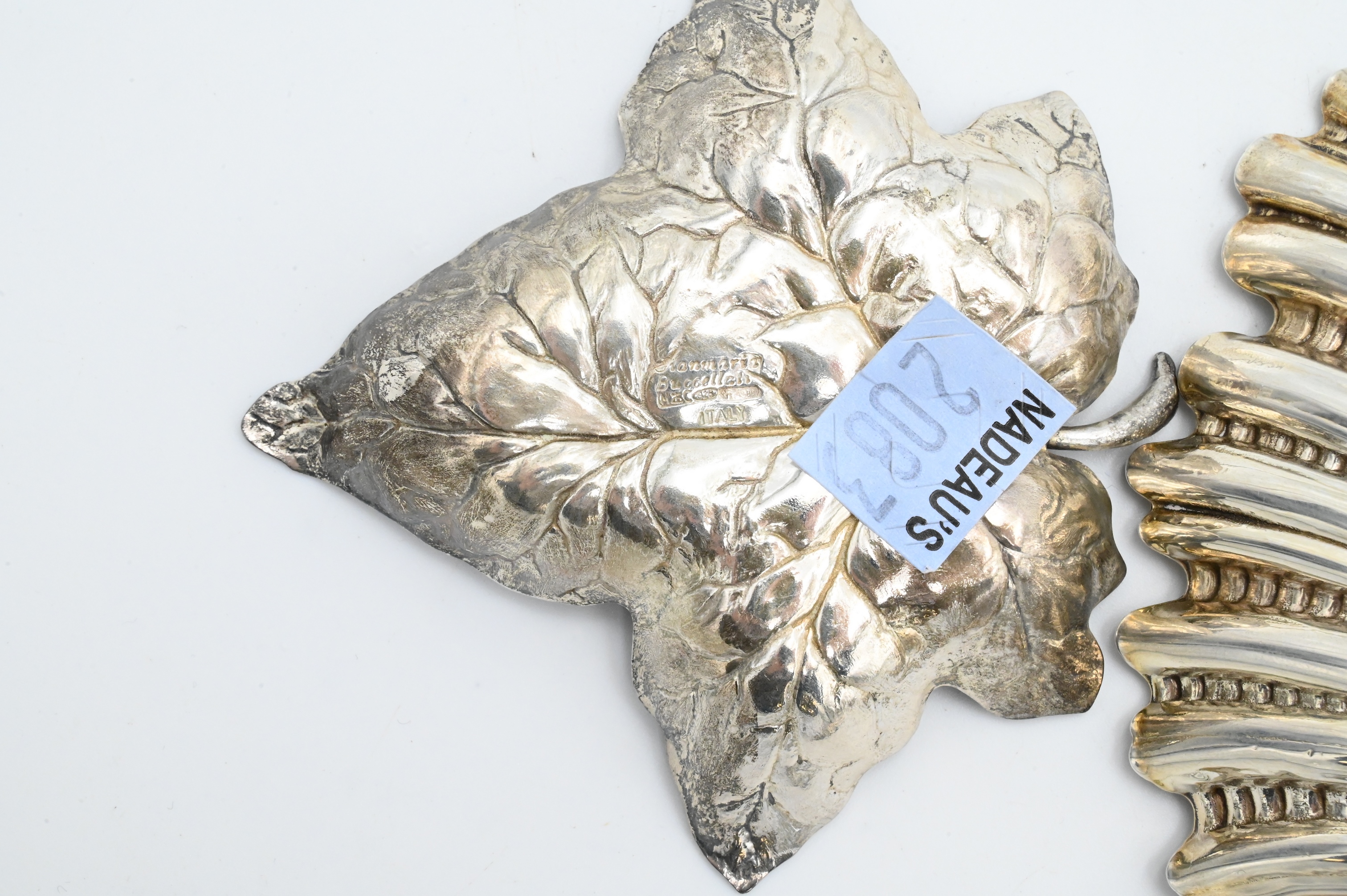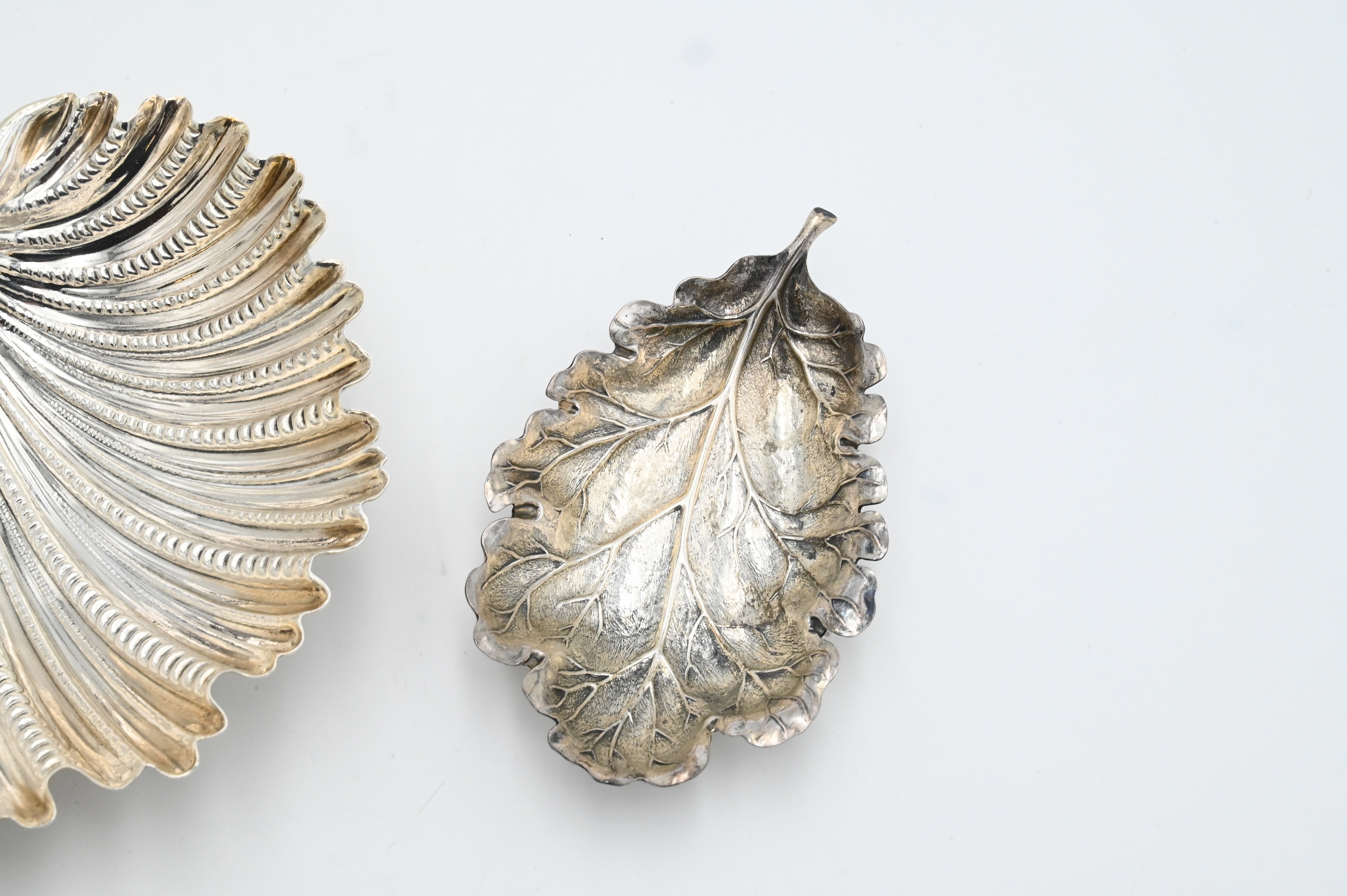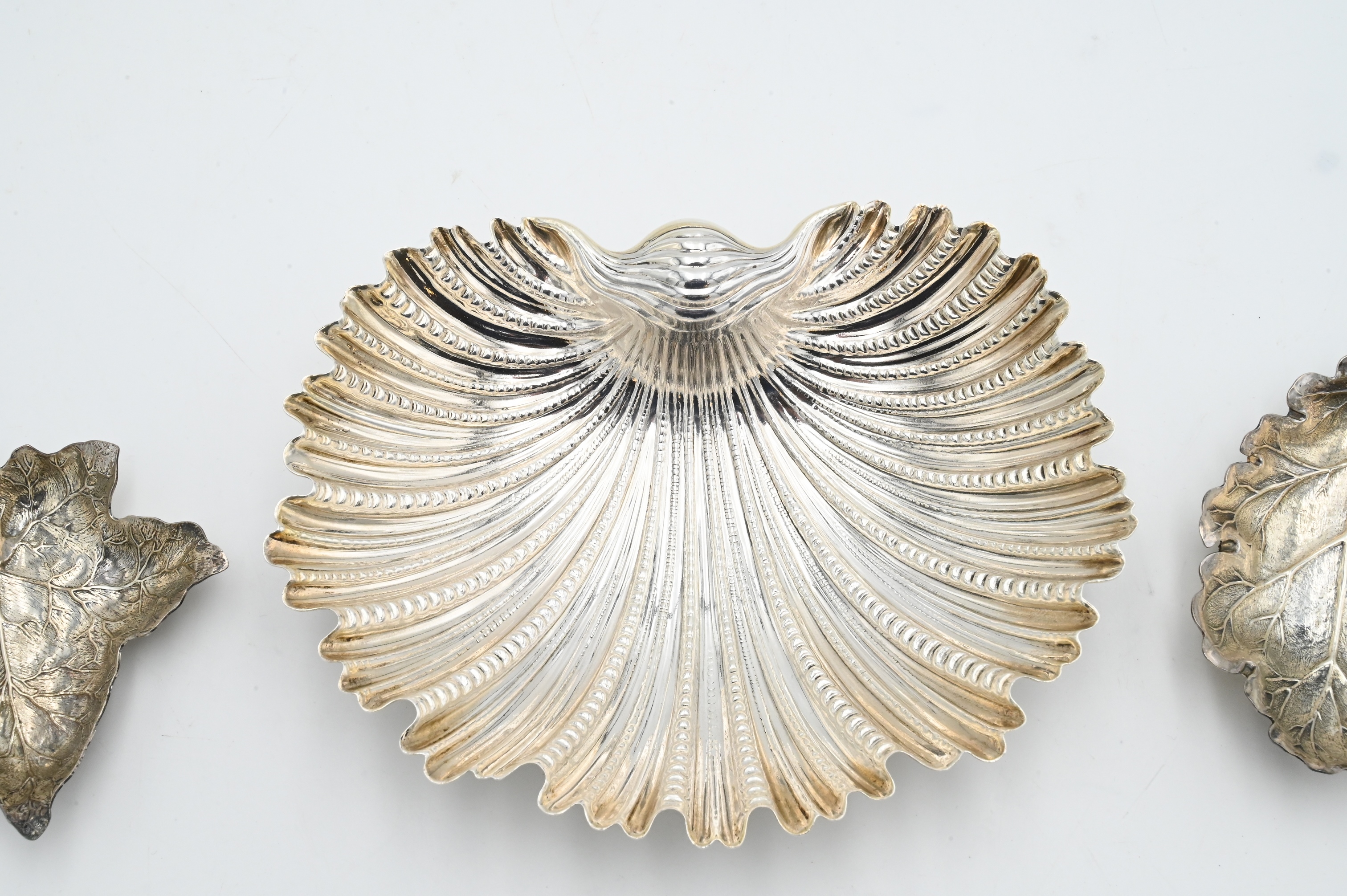 to include shell dish set on shell feet, and two leaf form dishes each marked Buccellati Italy Sterling