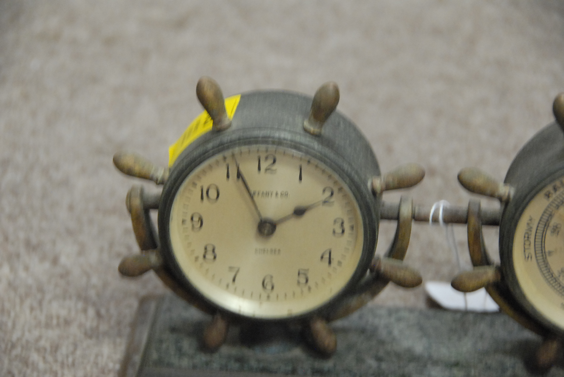 Tiffany & Co. Chelsea ship’s clock and barometer on stand.
