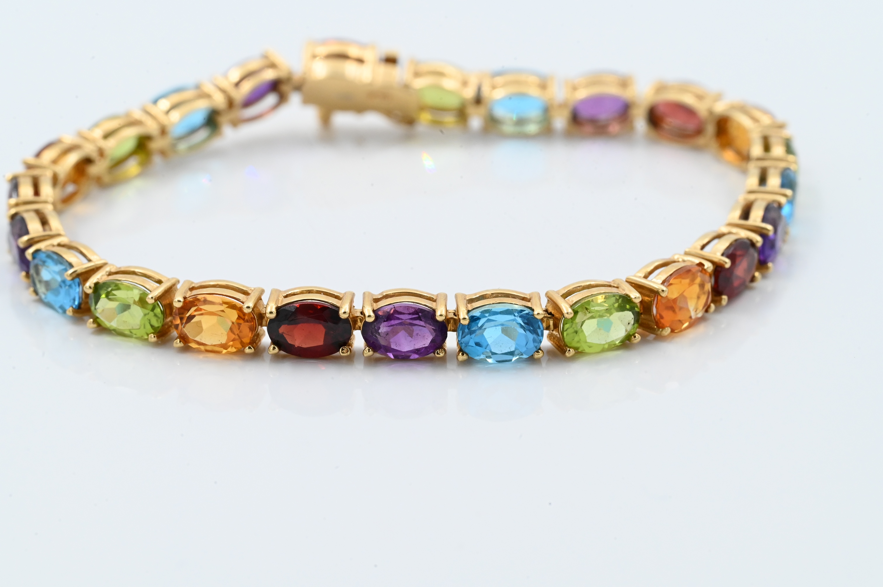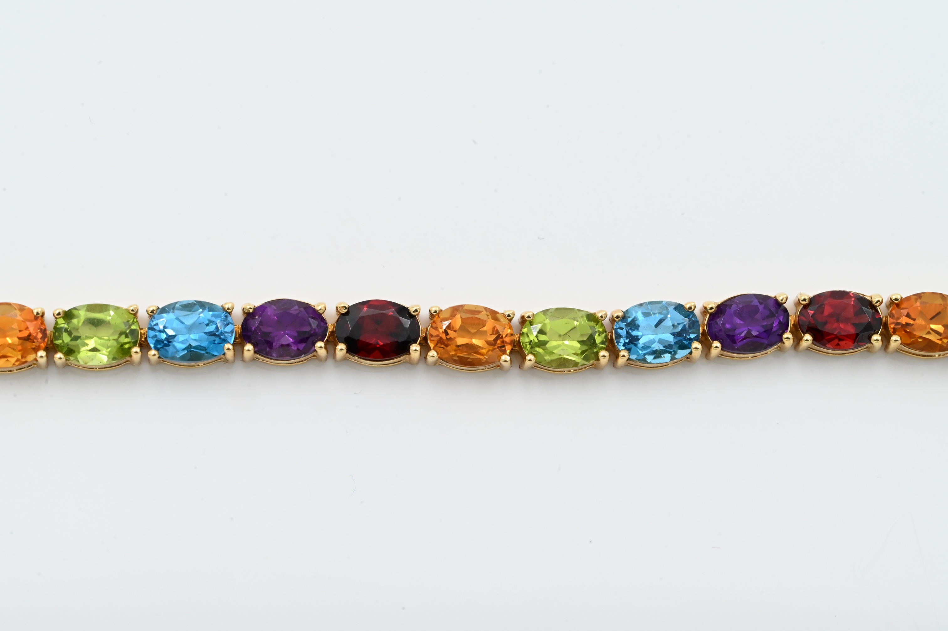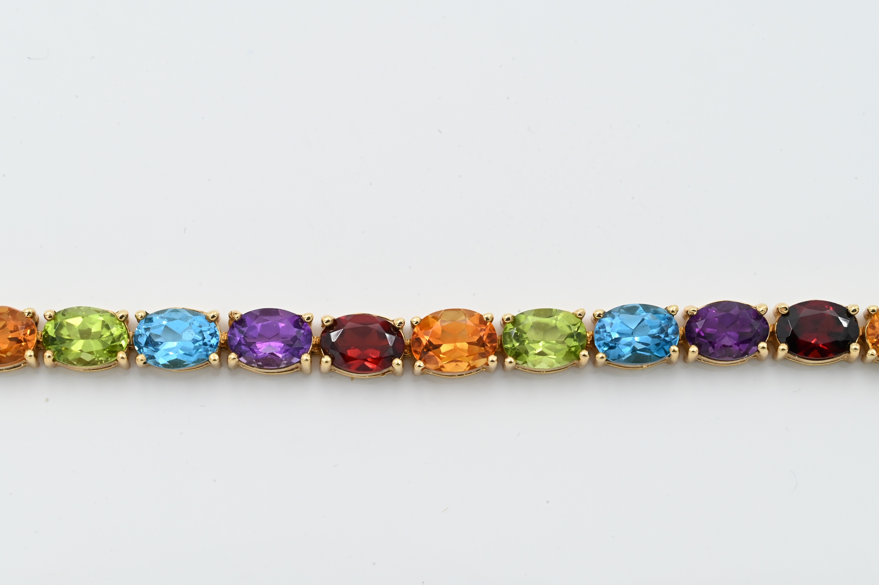 having 24 oval 7 x 5 mm stones including garnet, amethyst, blue topaz, peridot, and citrine