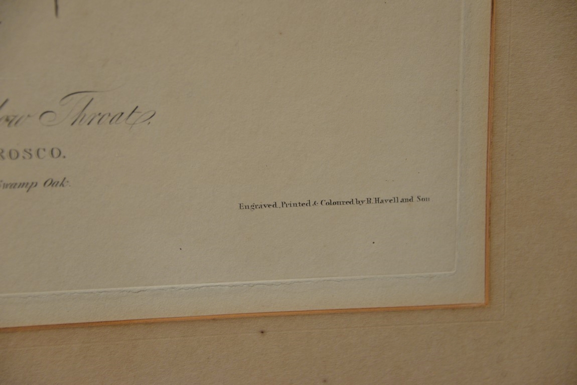 After John James Audubon 1856-1871 Roscoe’s Yellow Throat SYLVIA ROSCO. Plate 24 hand colored engraving marked lower left: Drawn from Nature and Published by John J. Audubon F.R.S.E. M.W.S. marked lower right: Engraved, Printed, & Coloured by R. Havell and Son plate size 19 1/2 x 12 1/2, sight size 23 3/4 x 16 1/4 Provenance: The Estate of Natalie Rafferty