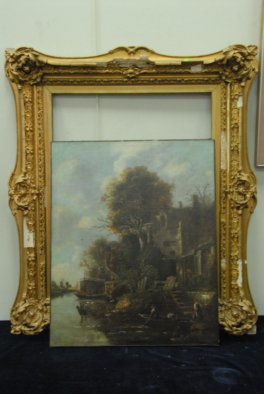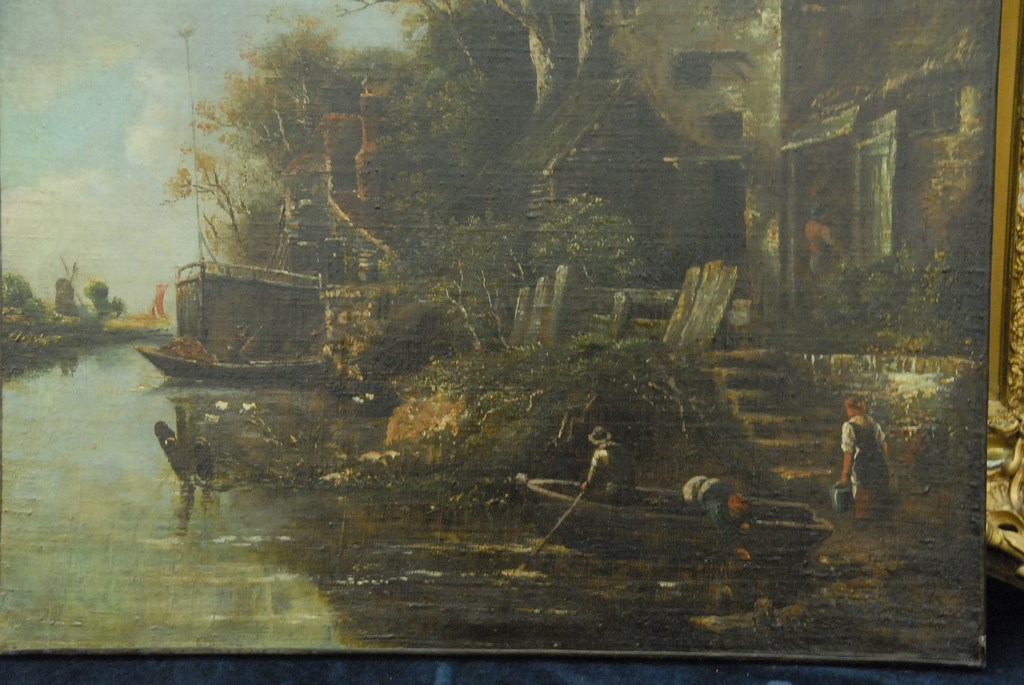 Attributed to John Crome 1768-1821 RIVER’S EDGE oil on canvas 34 x 27 1/4