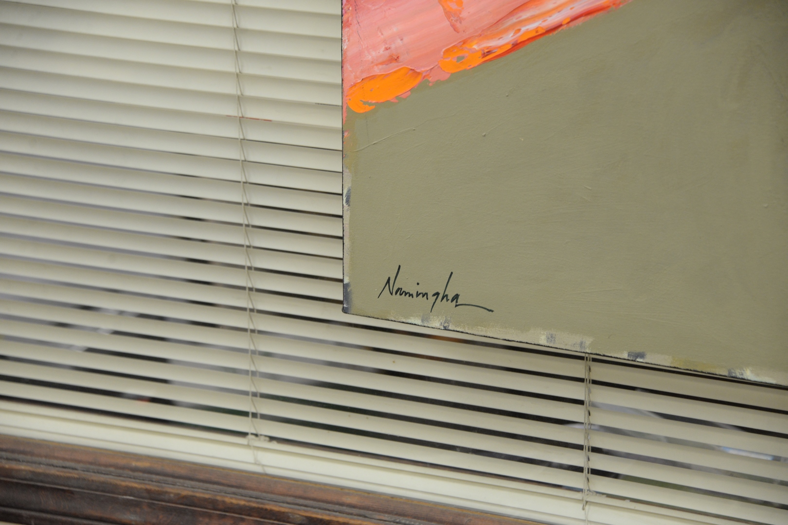 Dan Namingha (American, b. 1950), Kwahu Series, 1995, acrylic on canvas, signed lower left “Namingha”, signed, titled, and dated on the reverse, 60″ x 60″. Susan Duval Gallery label adhered to stretcher bar. Provenance: From the Marjorie & Howard Drubner Collection, Middlebury, Connecticut.