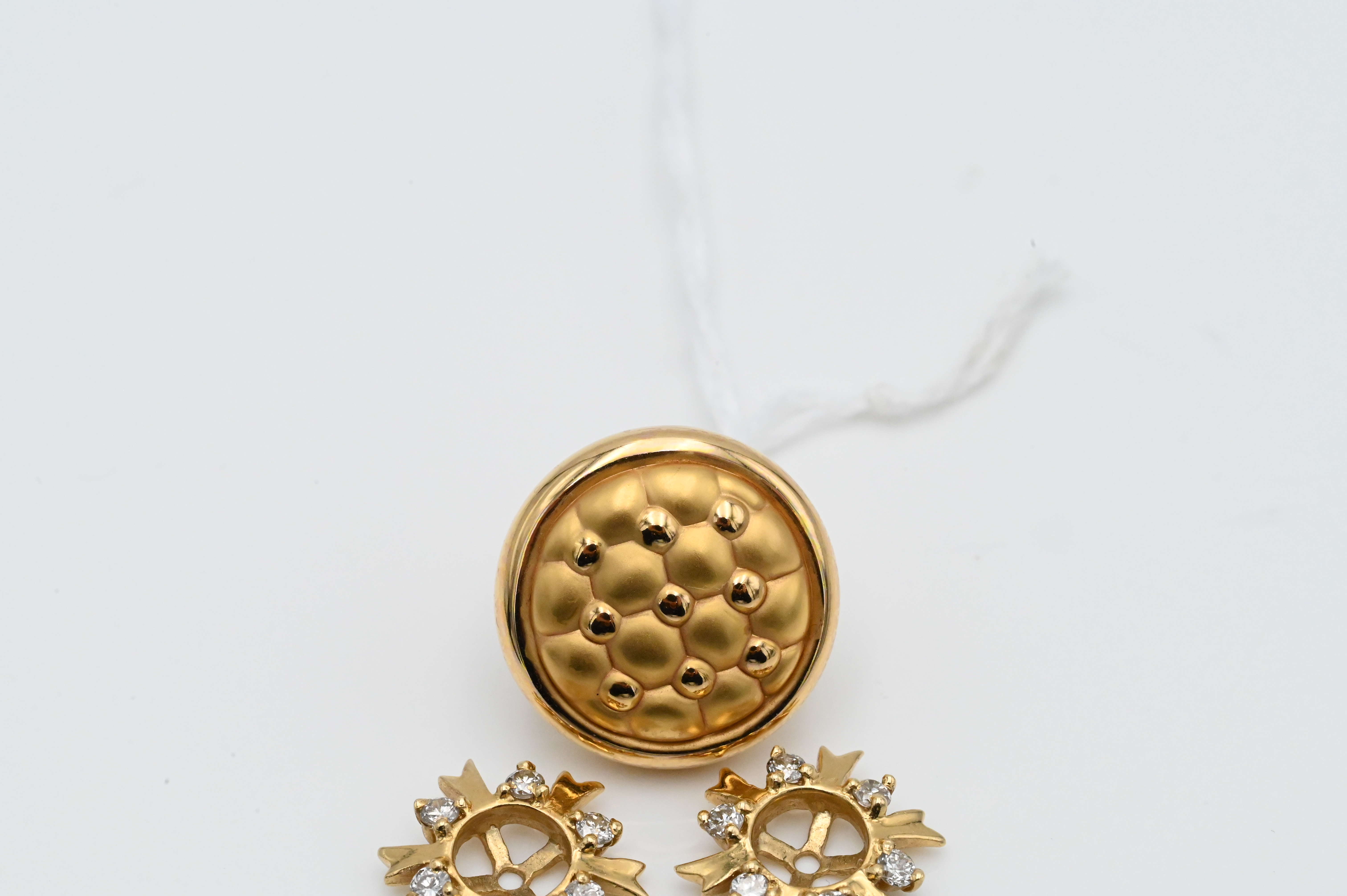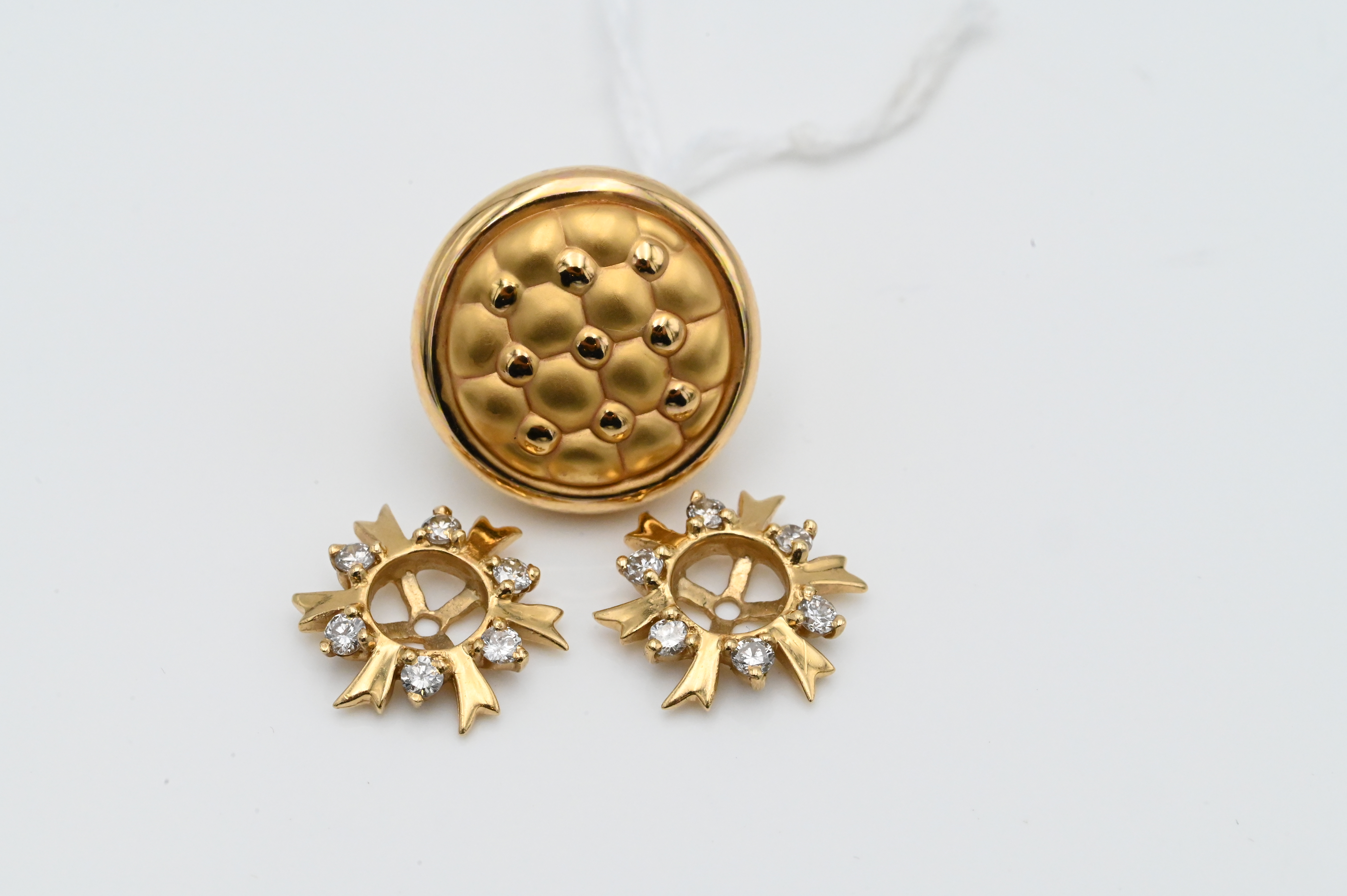 Pair of 18 Karat Yellow Gold Pierced Earrings, along with 14 karat earring backing.