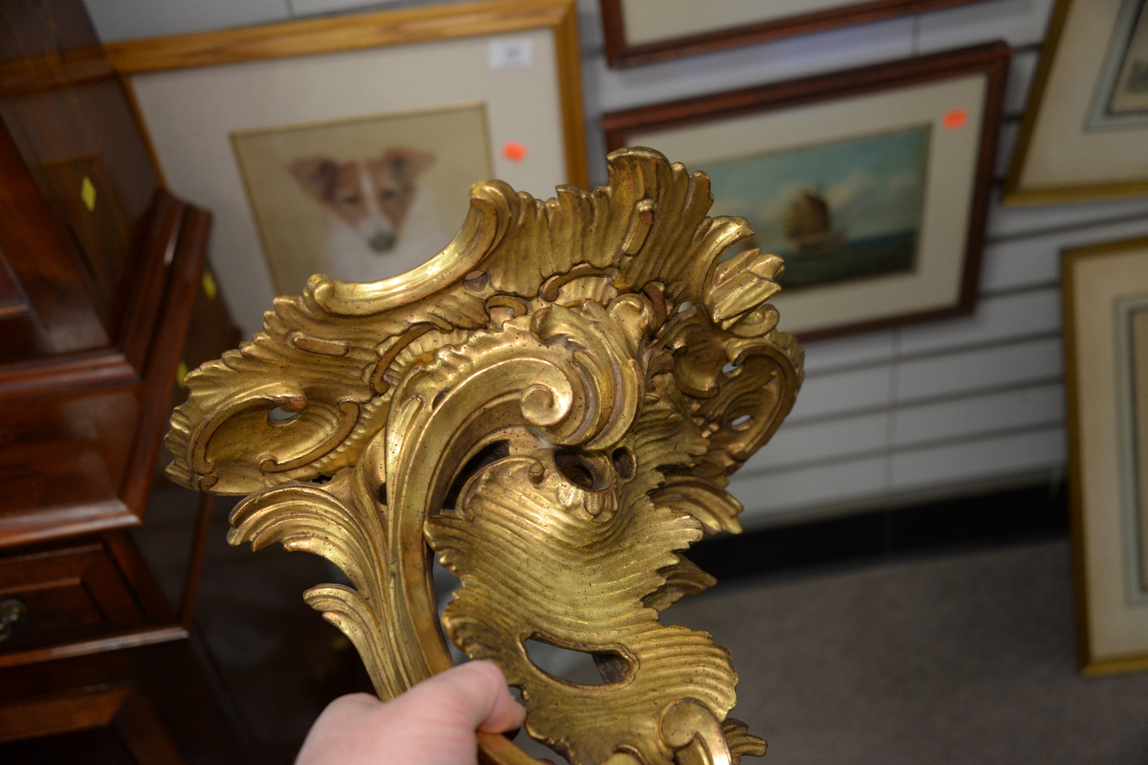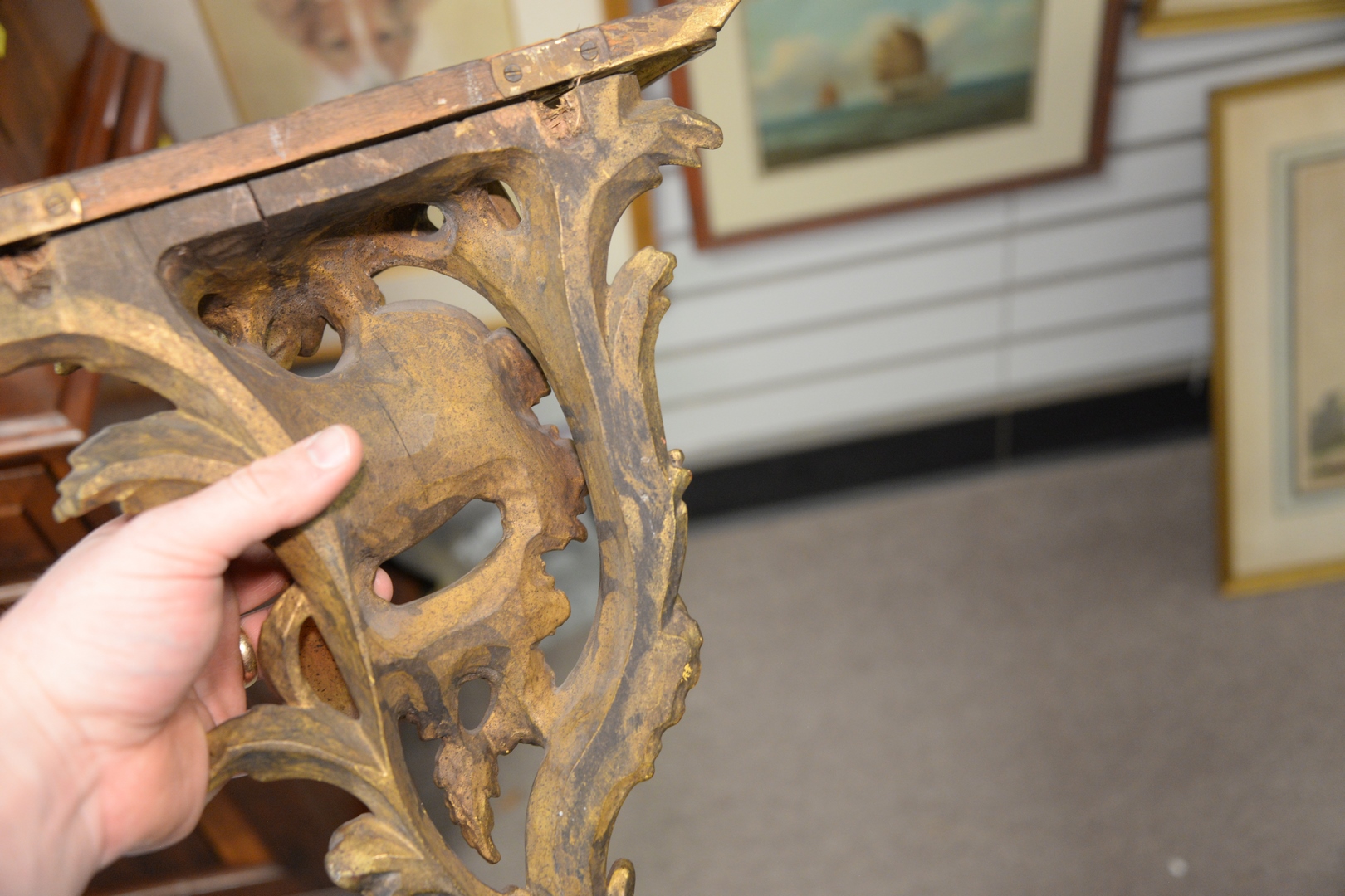Pair of Giltwood Foliate and Scroll Carved Wall Brackets, height 19 inches.