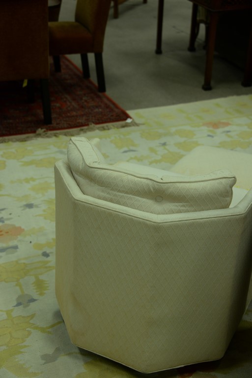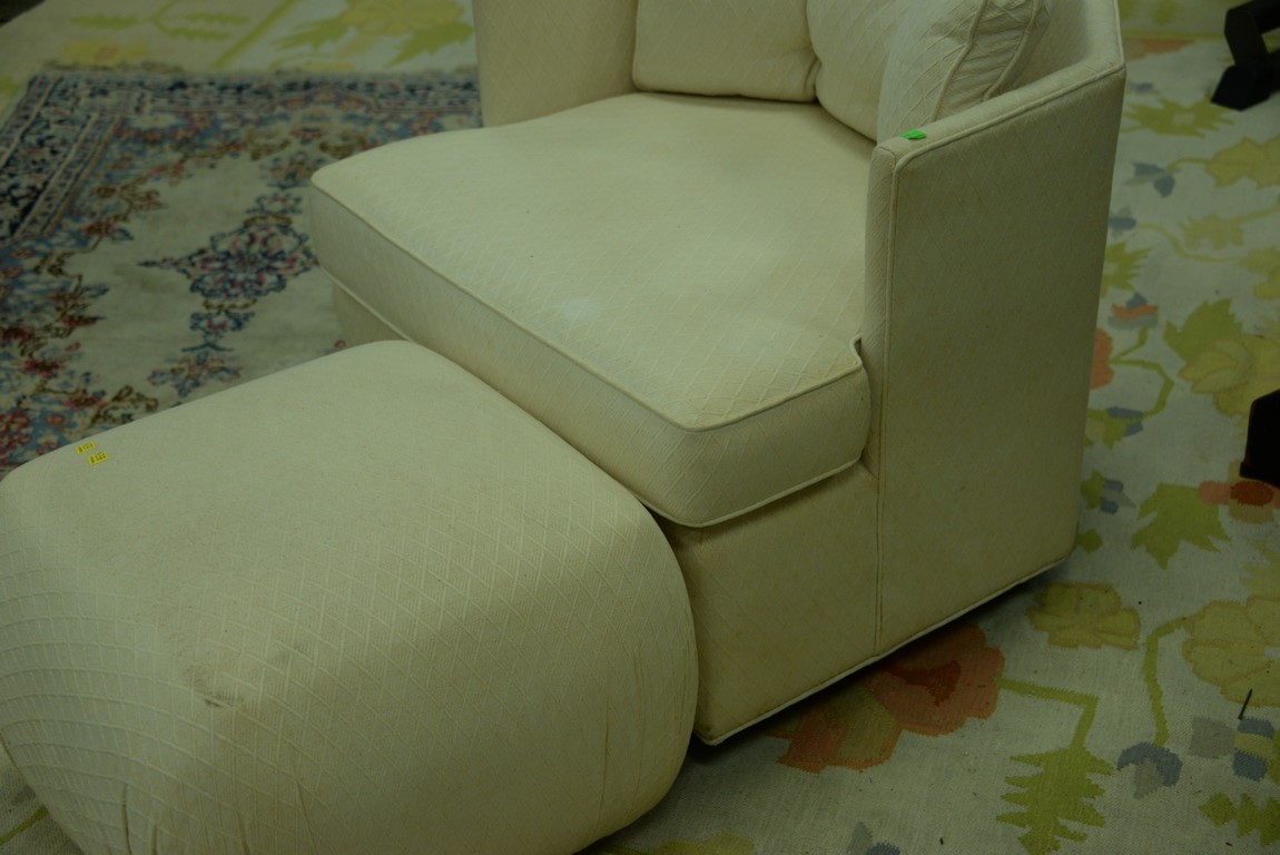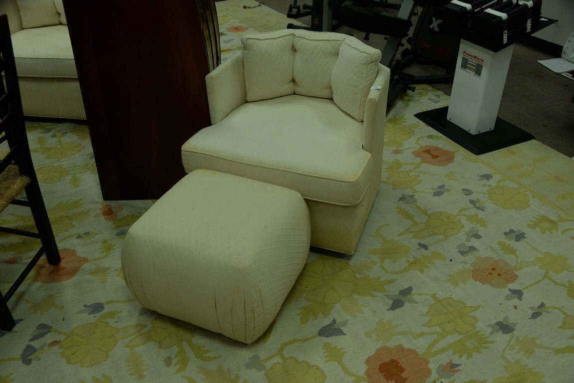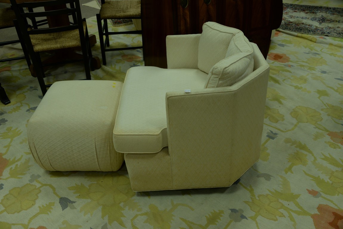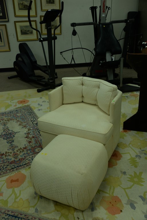 Lot 104: Pair of Harvey Probber style Mid-Century swivel chairs and ottomans, stamped Theodore Graham ASID, Woodbridge, CT