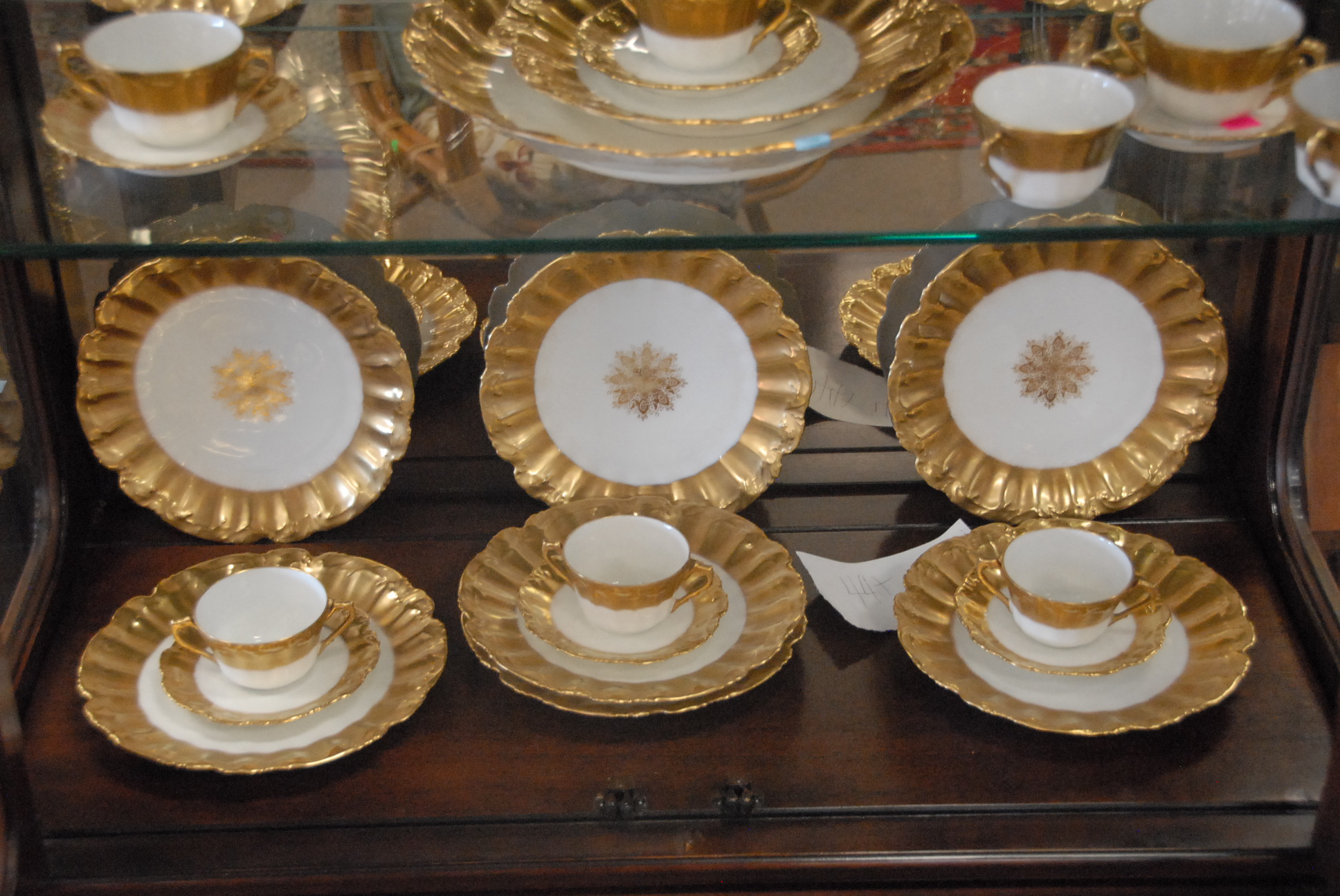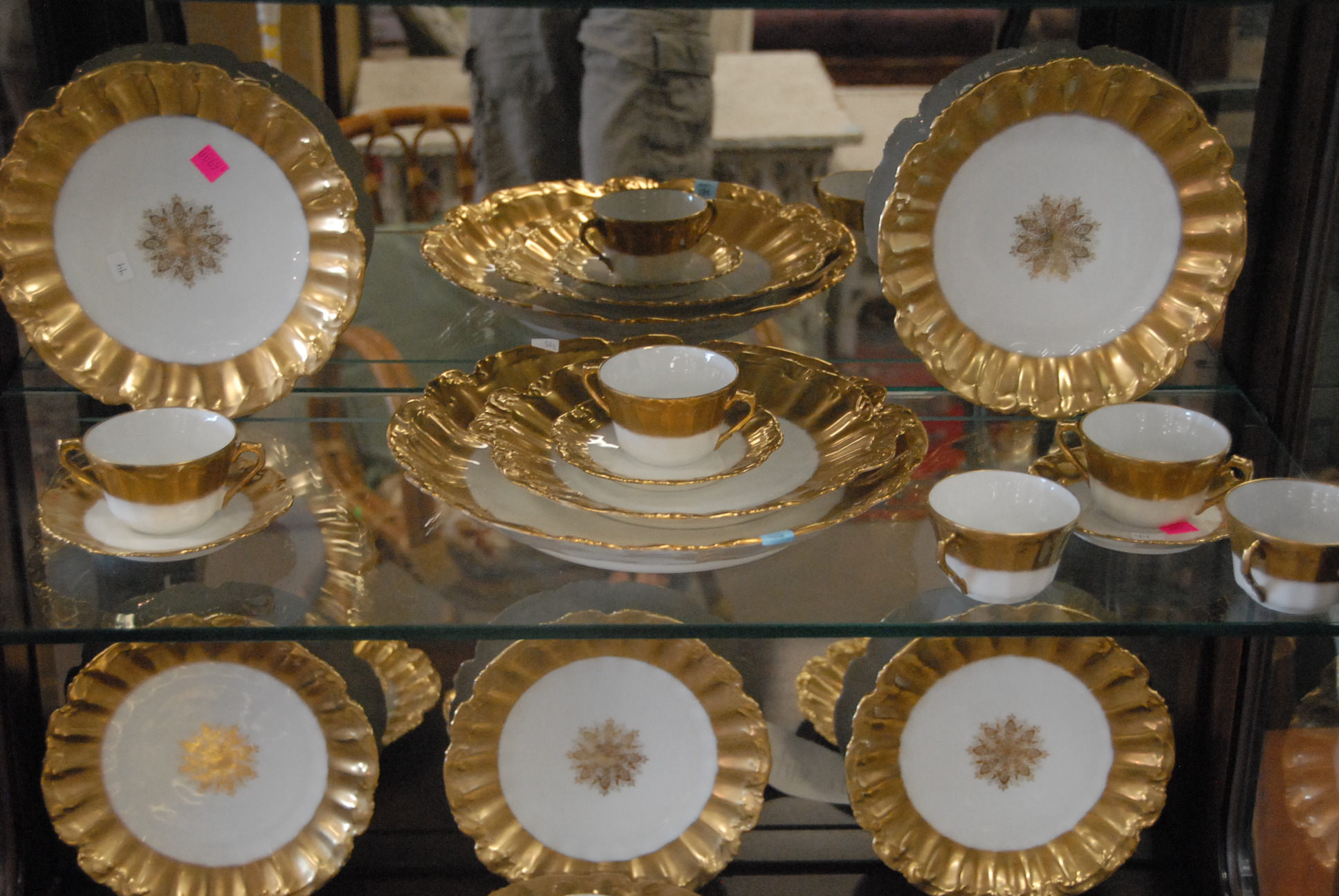 Set of Limoges dinnerware, setting for twelve plus serving pieces, fifty pieces total.