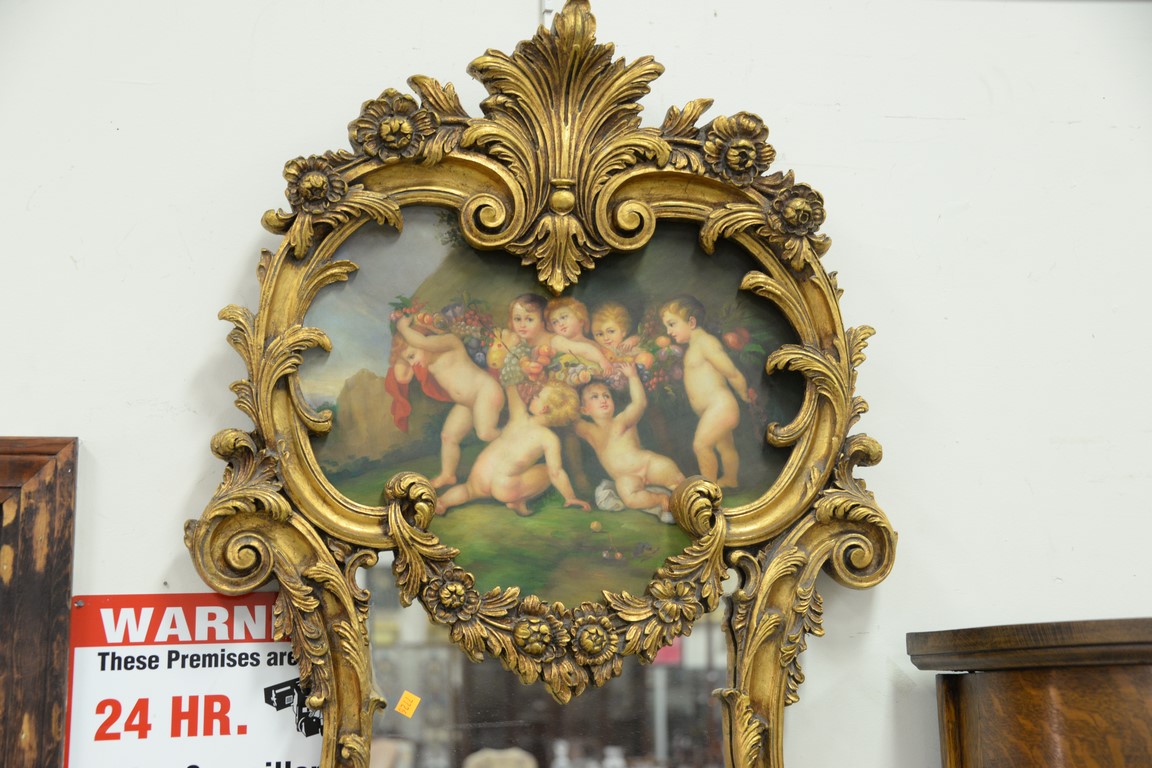 Trumeau style mirror with oil on canvas painting, late 20th century. ht. 60 in. wd. 27 in.