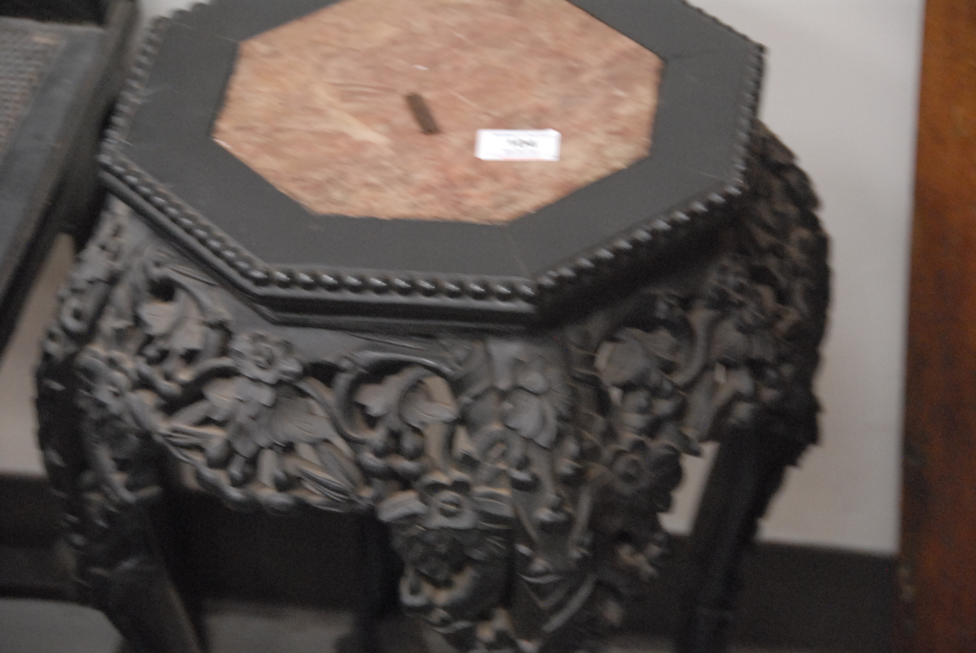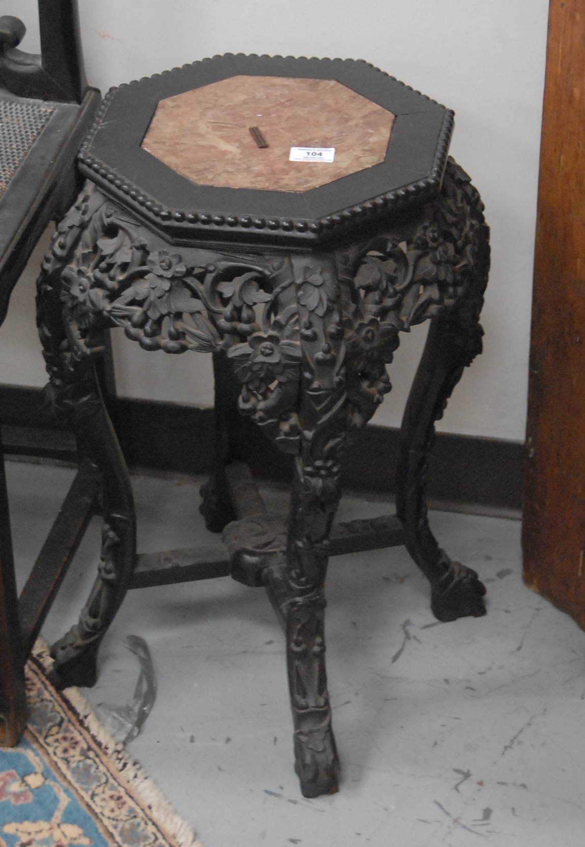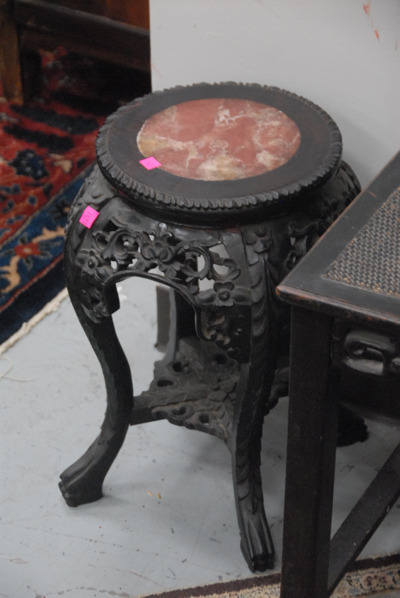 Two Chinese stands with marble inserts. ht. 19 in. & ht. 24 in.
