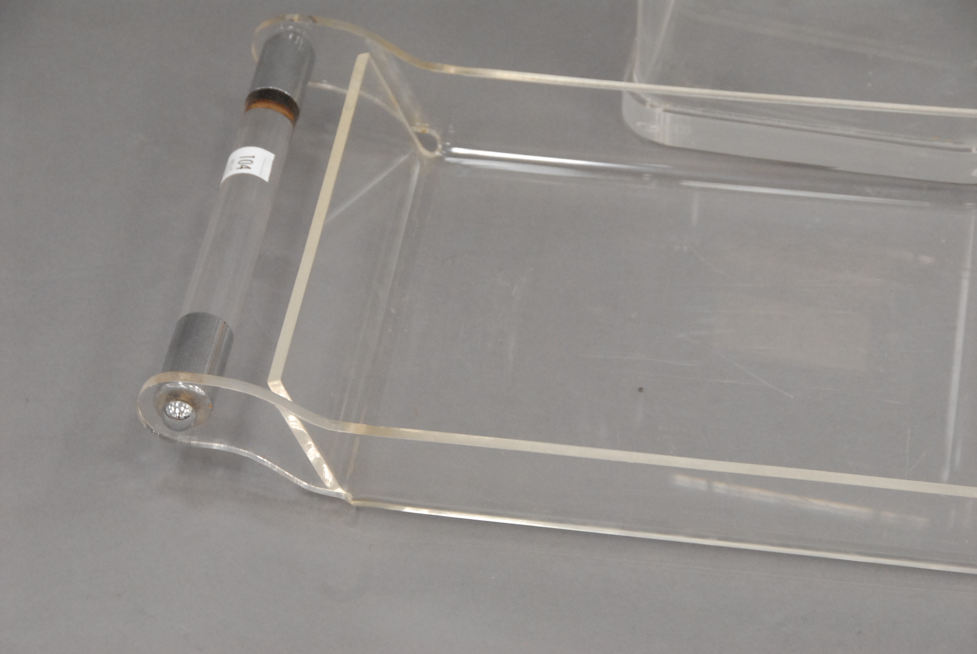 Two piece lot to include a lucite serving tray and a covered container with handles.