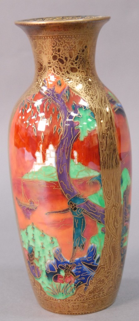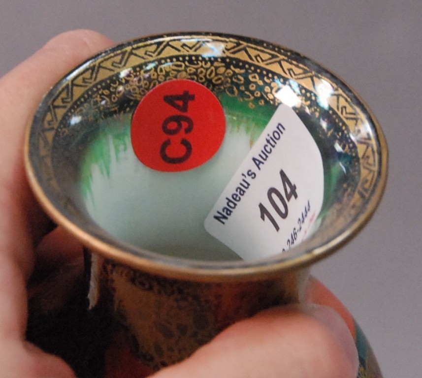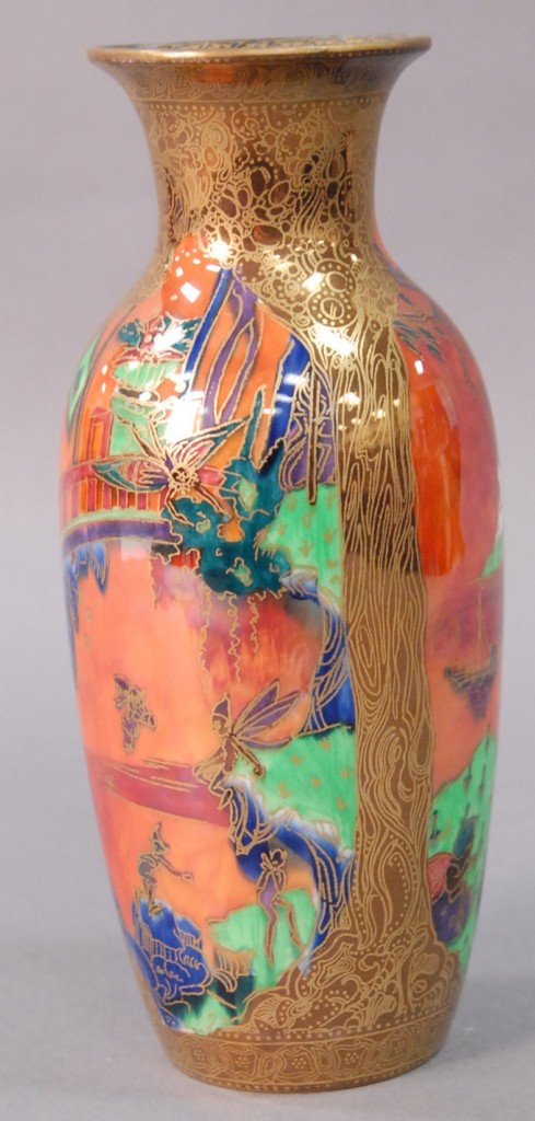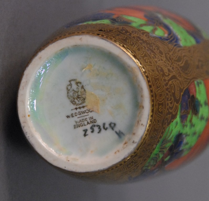 Wedgwood Fairy Luster vase with flared top, numbered 2536PK. height 8in. rim broke and professionally repaired