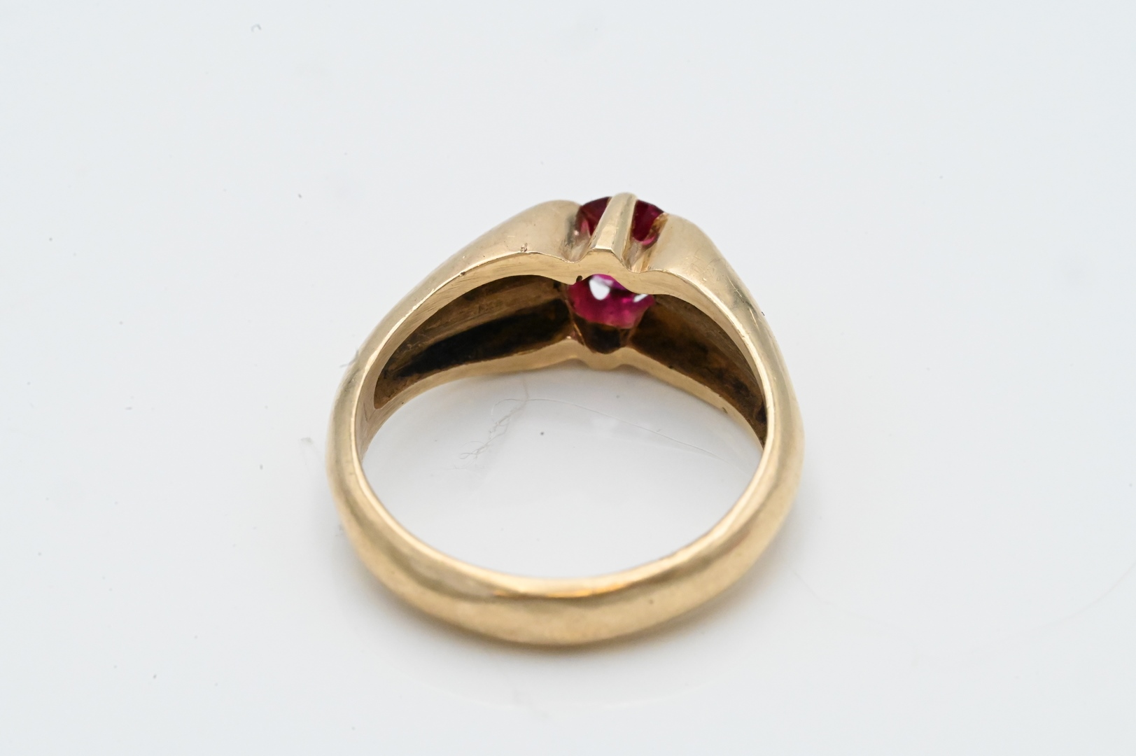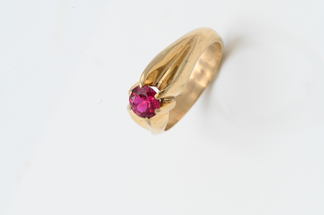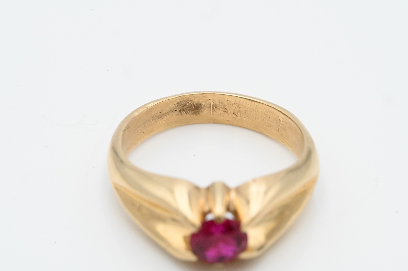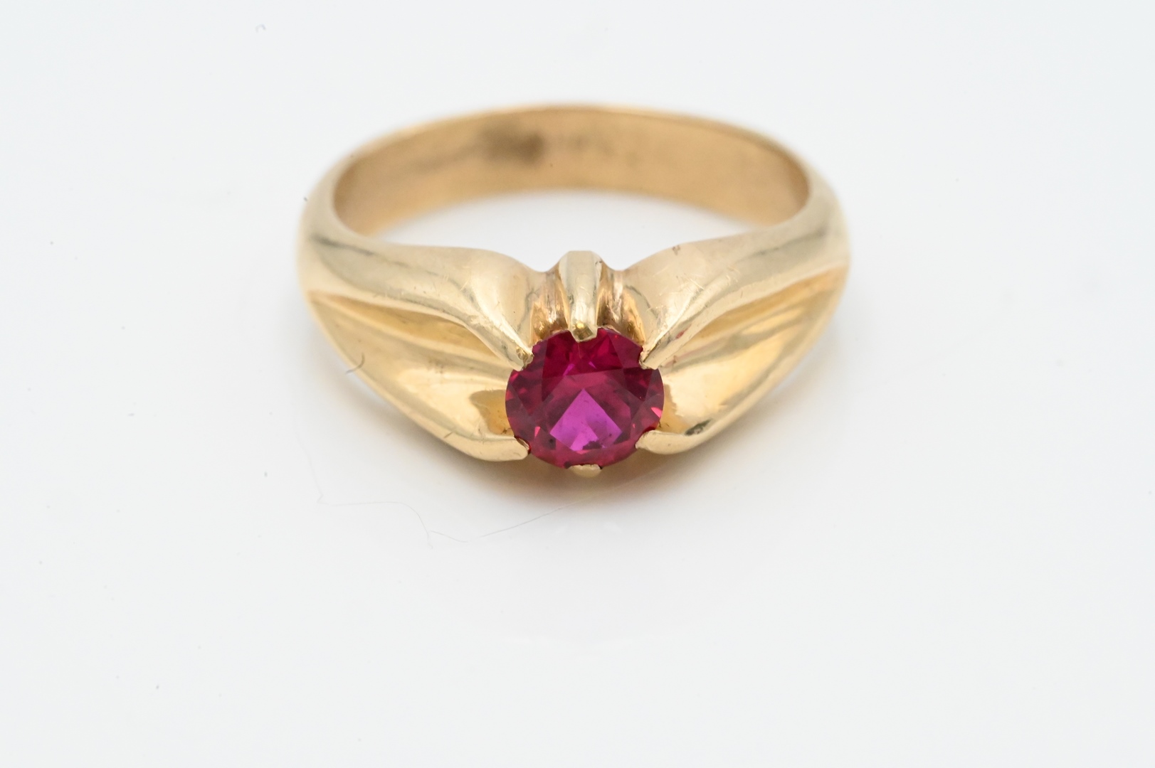 14 Karat Yellow Gold Ring set with ruby size 9, 6.1 millimeters, 6.3 grams Condition: worn but good condition