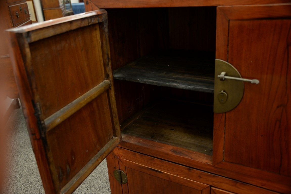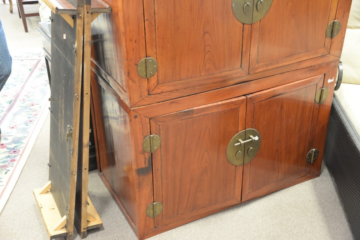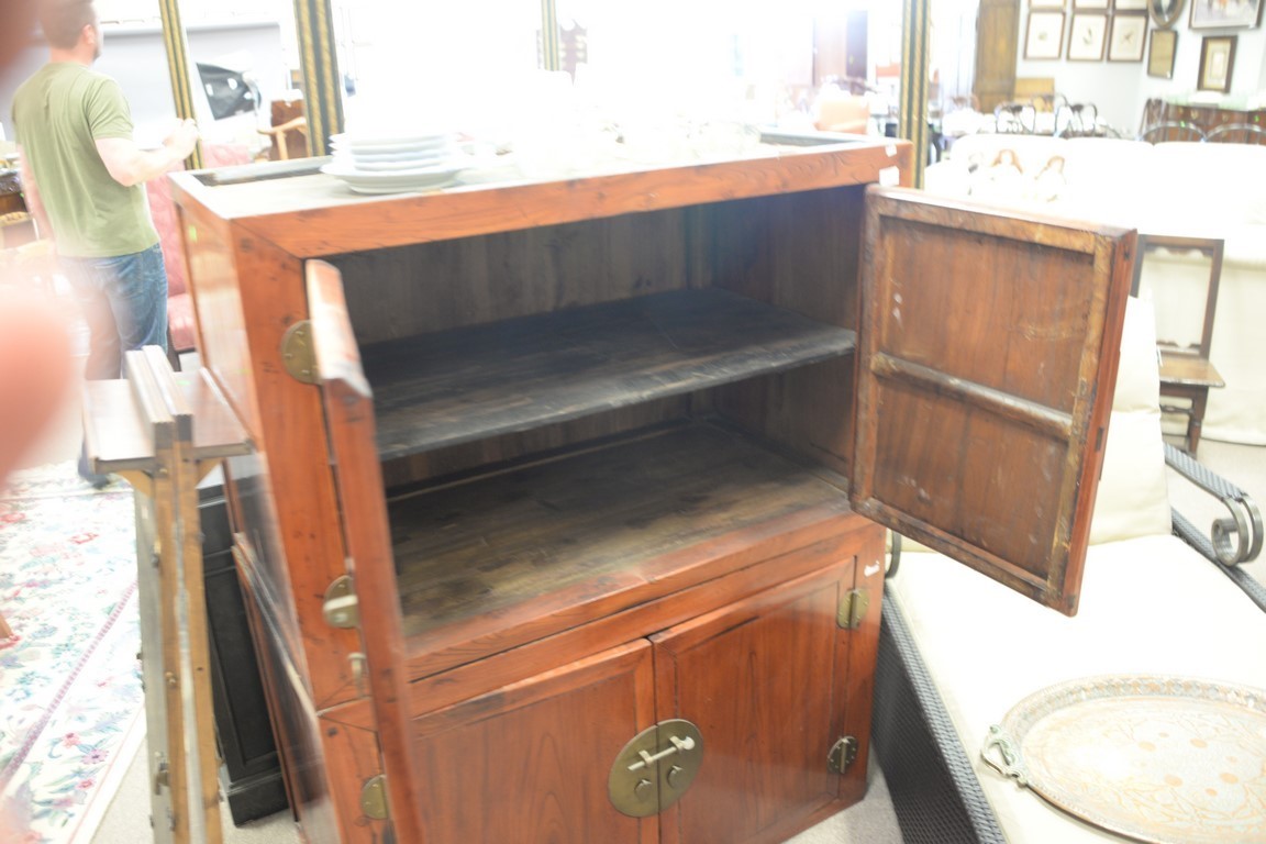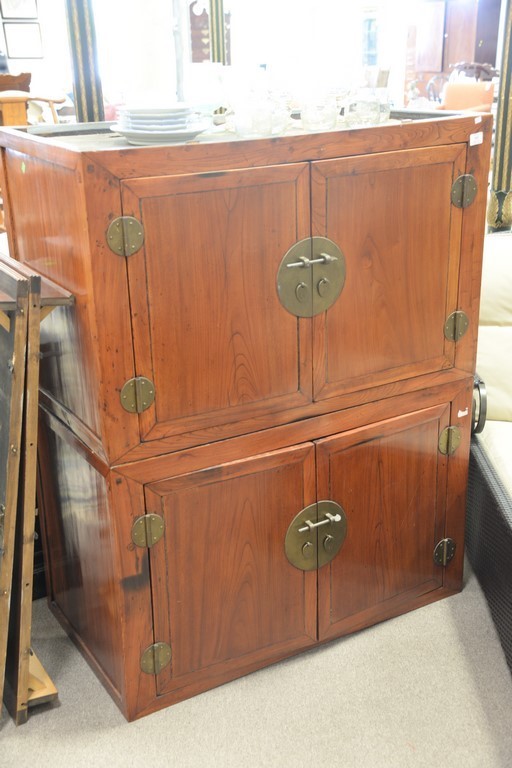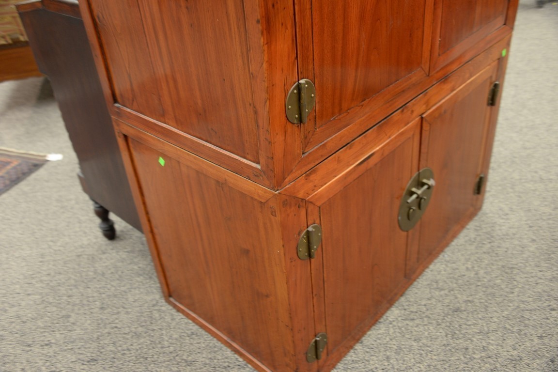 Lot 105: Chinese two part cabinet, each portion with two doors. ht. 54in., wd. 42 1/2in., dp. 23 1/2in.