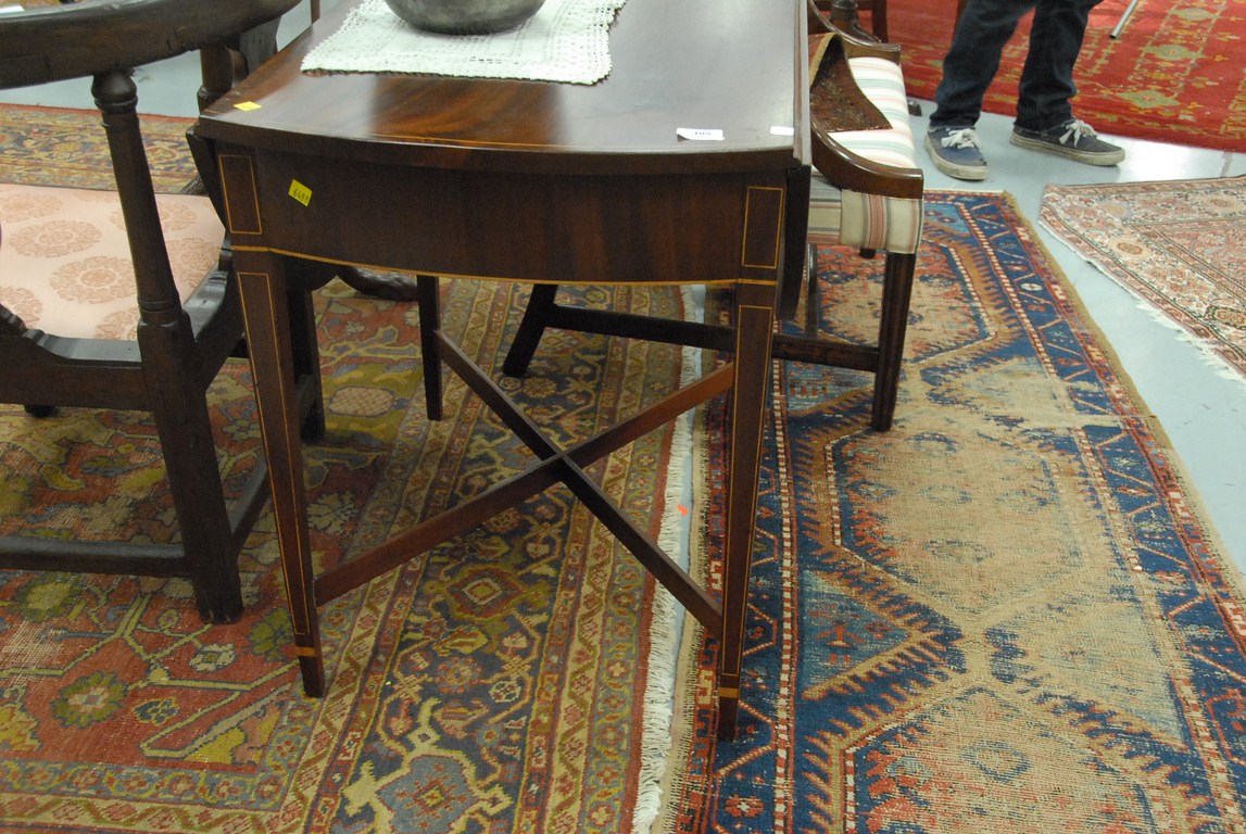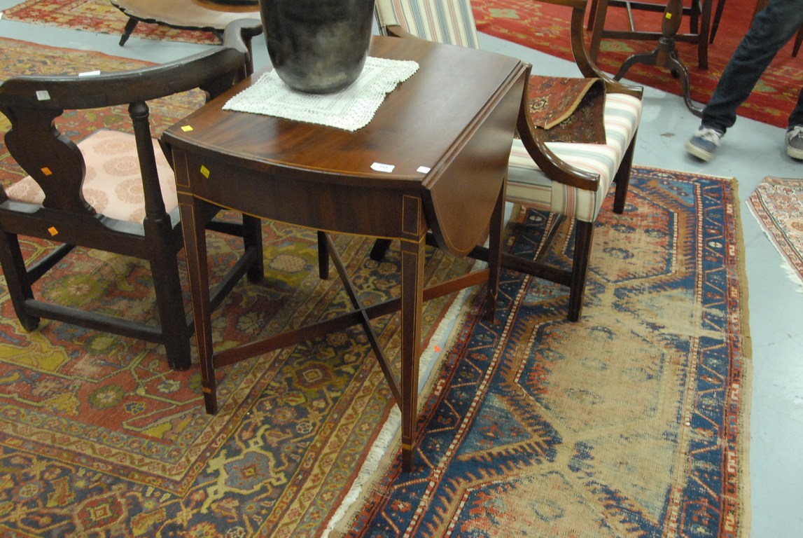 Lot 105: Federal mahogany drop leaf table with line inlay and stretcher base, early 19th century. ht. 27in. top: 30 x 20 Provenance: Est…..