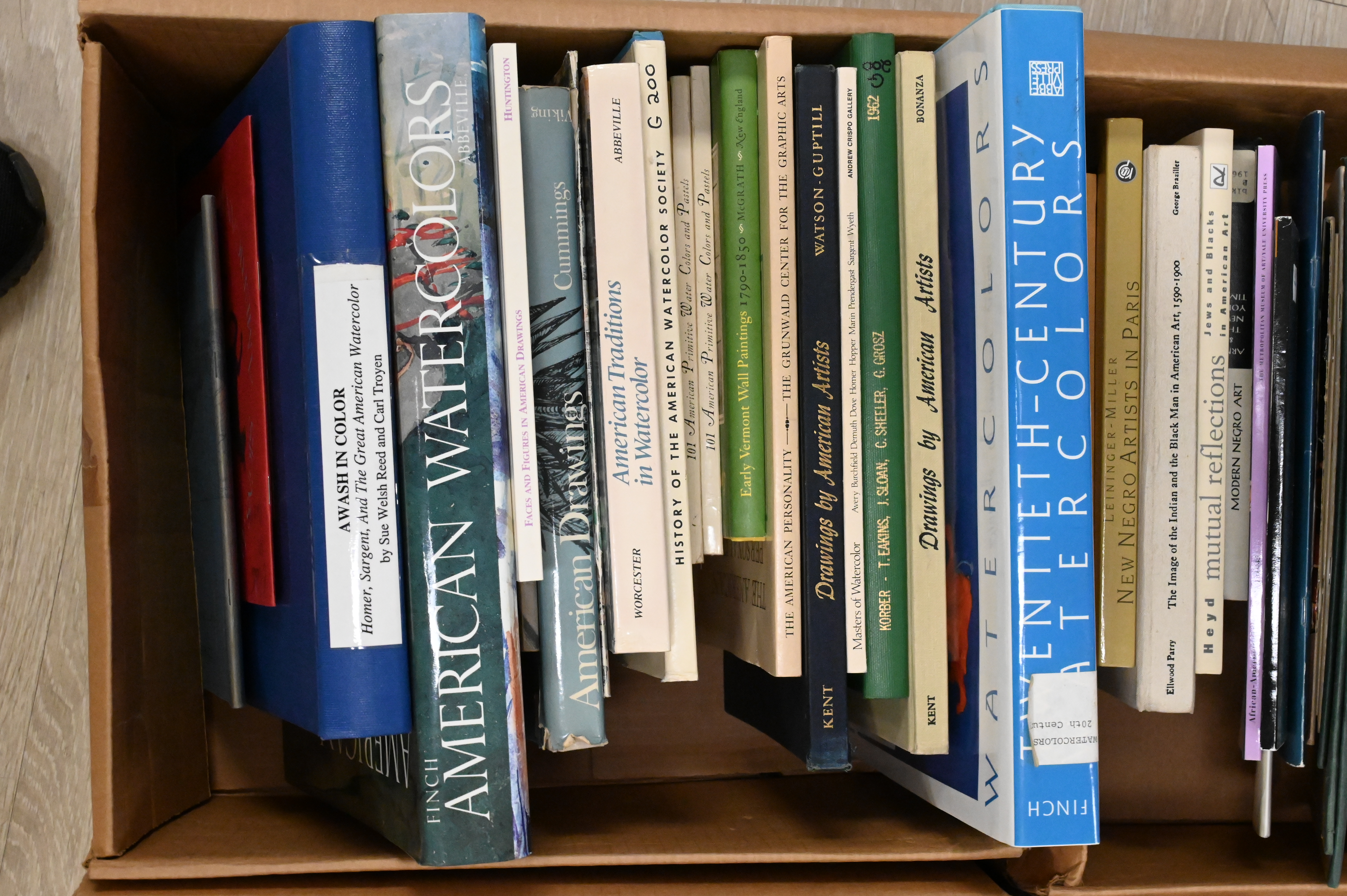 Lot 105: Four Box Lots of Art Reference Books Primarily Focused on Watercolor and African American Artists
