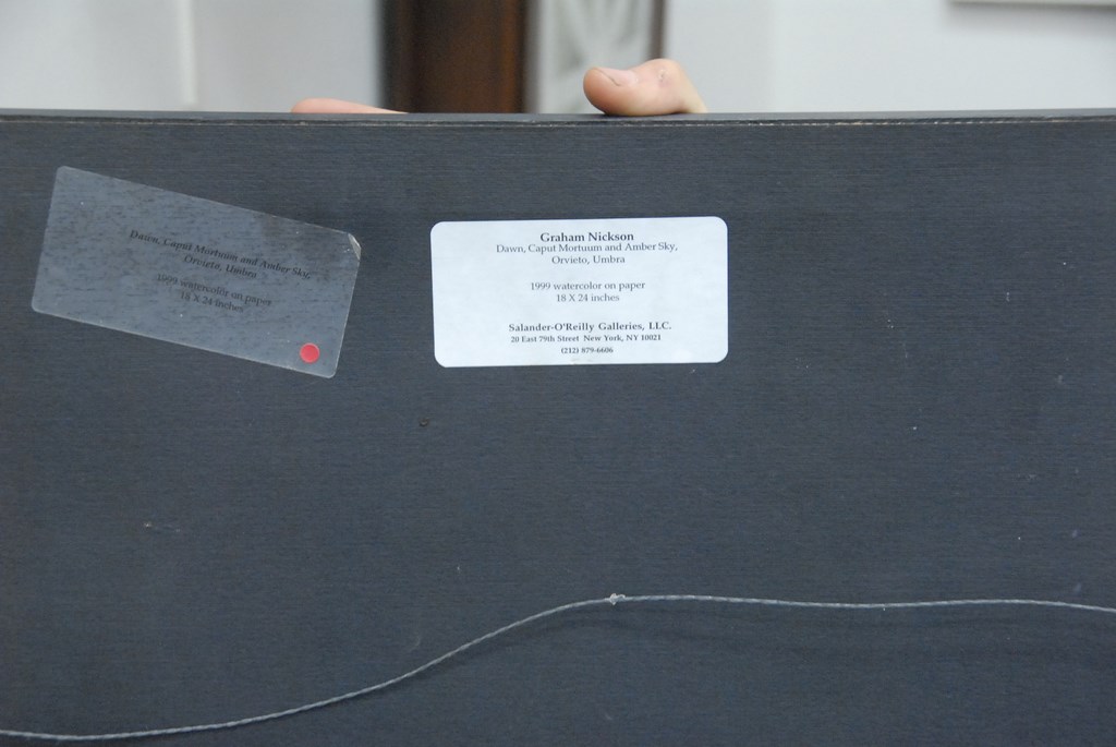Graham Nickson 1946 DAWN, CAPUT MORTUUM AND AMBER SKY 1999 Orvieto, Umbra watercolor 18 x 24 Provenance: Salander O’Reilly Galleries LLC, N.Y. to Henry Luce, Fisher’s Island, N.Y. to present owner