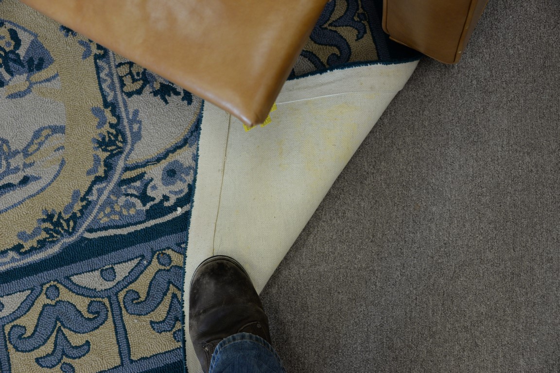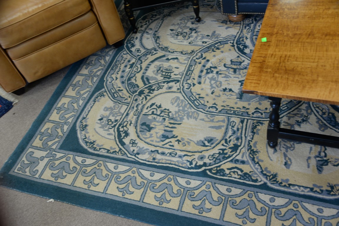 Hooked carpet, Chinese meat platter design, 8 x 11.