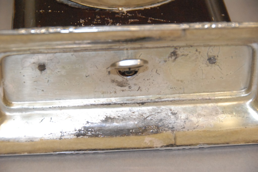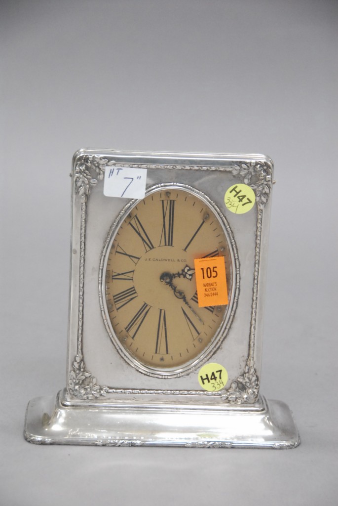 J. Caldwell and Company sterling silver clock.