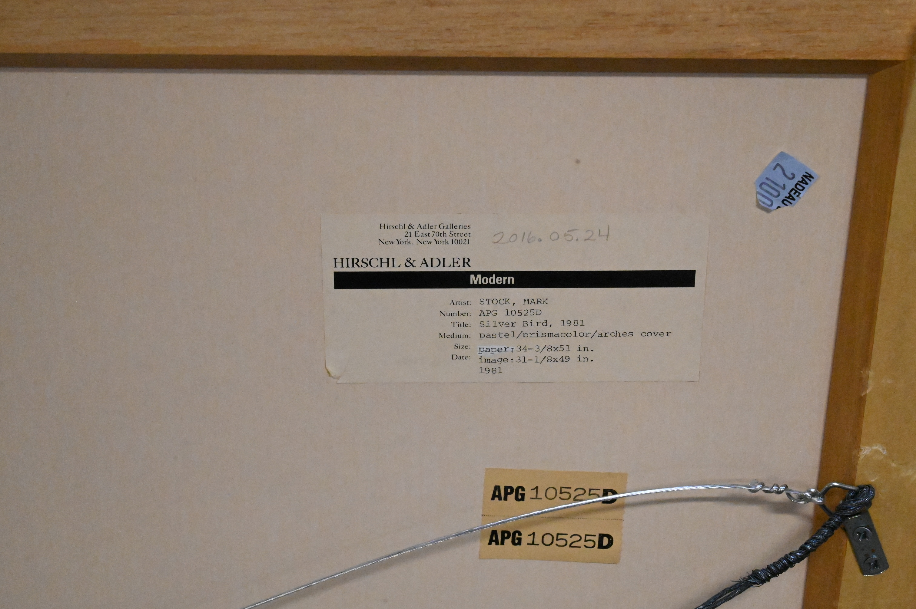 Provenance: Hirschl Adler Galleries N.Y.C. label on verso