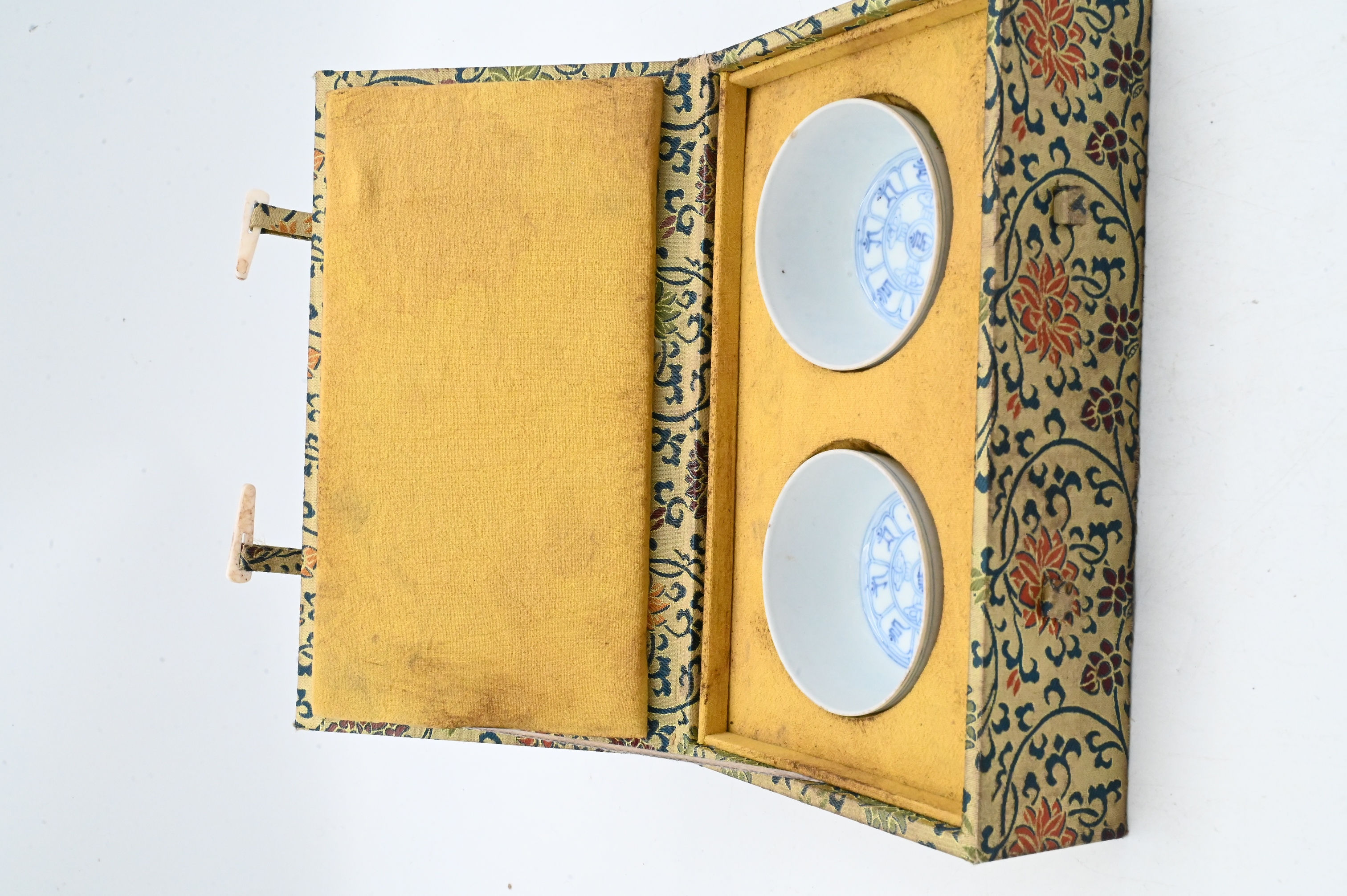 Lot 105: Pair of Chinese Porcelain Cups in Fitted Cloth Box