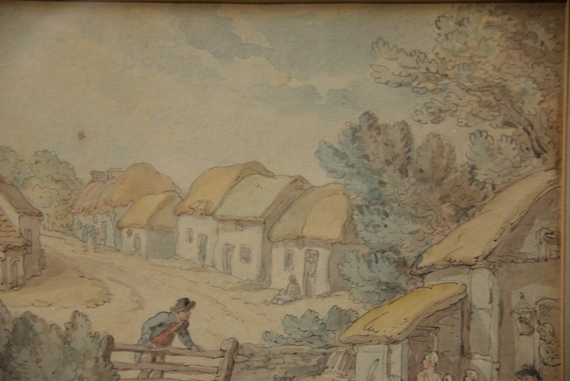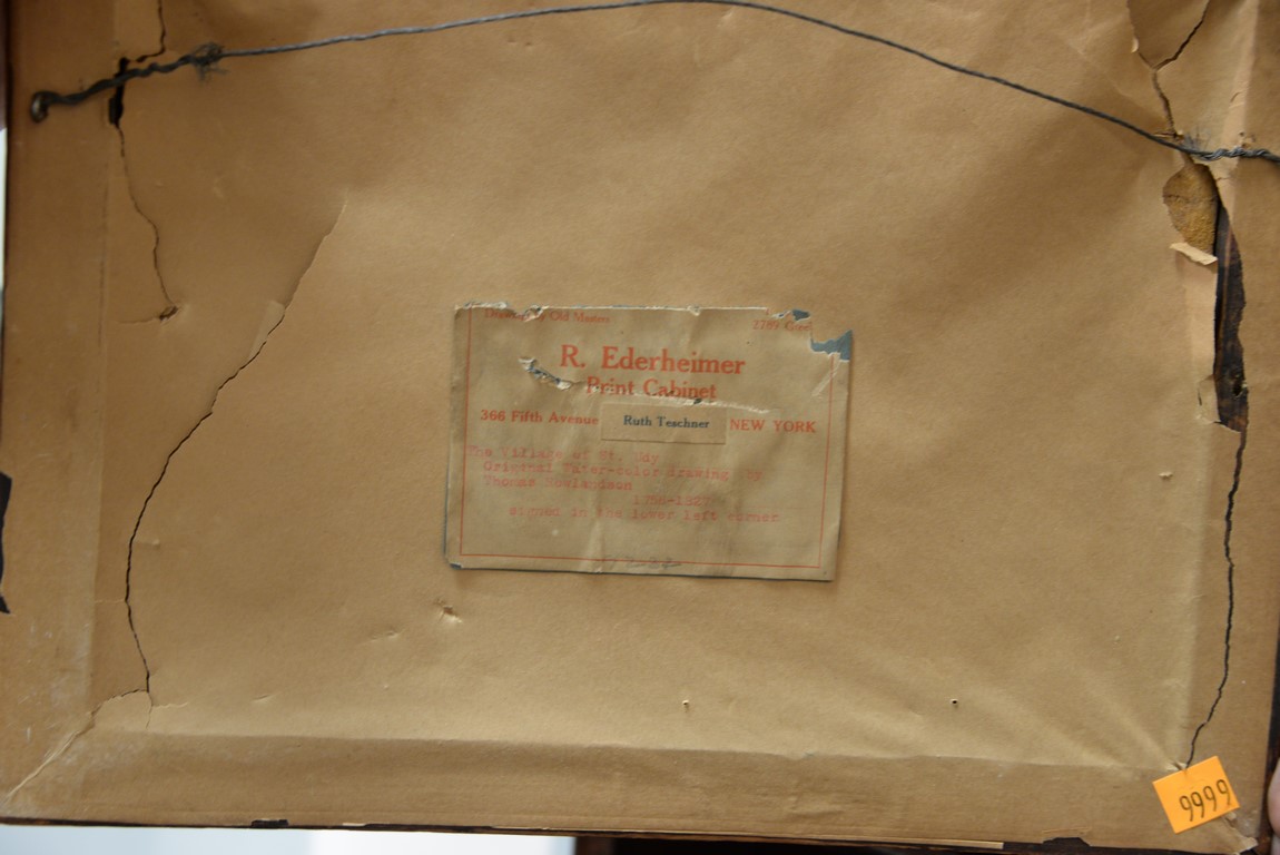 Lot 105: The Village of St. Udy watercolor signed lower left Rowlandson R. Ederheimer, 366 Fifth Avenue, New York label on reverse