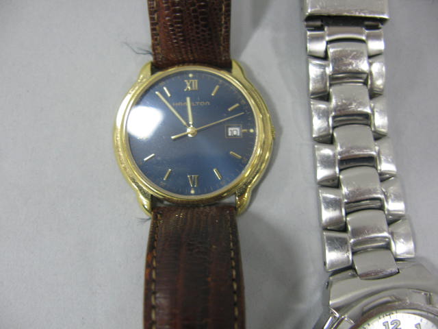 Two men’s wristwatches, one Hamilton, one Bulova Millennia with broken band.