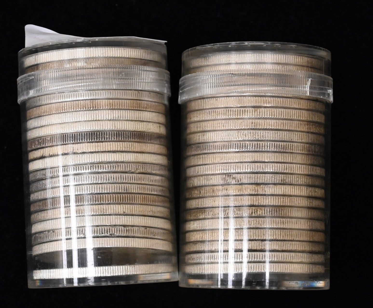 Two Rolls Silver Dollars, one is all 1921 Morgans and the other is of Peace Dollars, all circulated.