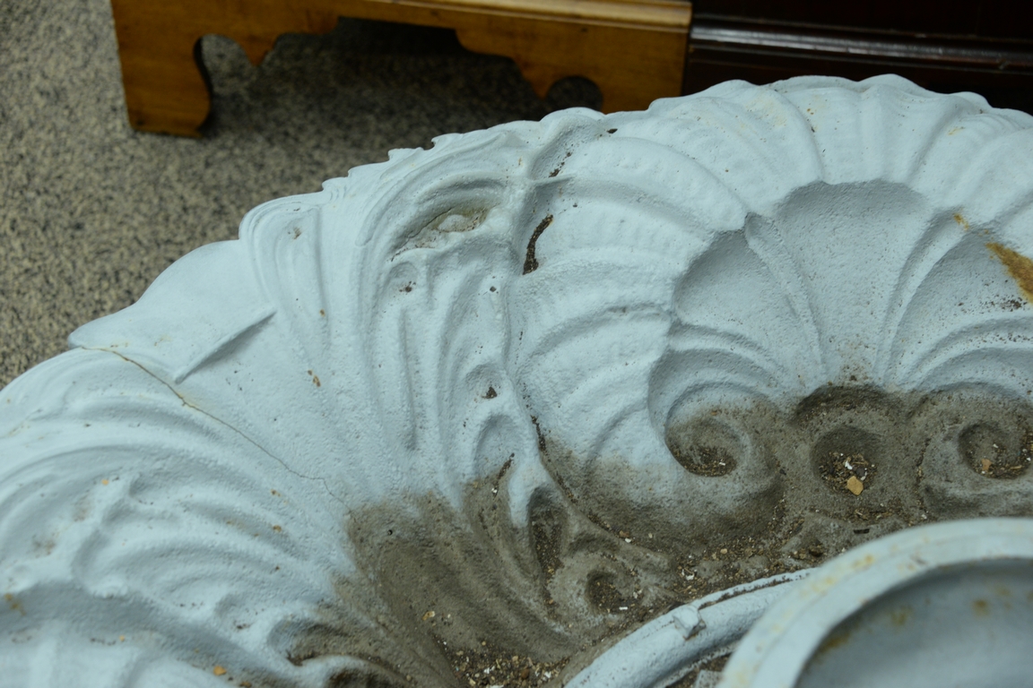 Victorian iron fountain base scroll and scallop shell design edge break missing piece on one side. dia. 53in. Provenance: Collection of Anne Jones Willis and the late John Ralph Willis, New Jersey