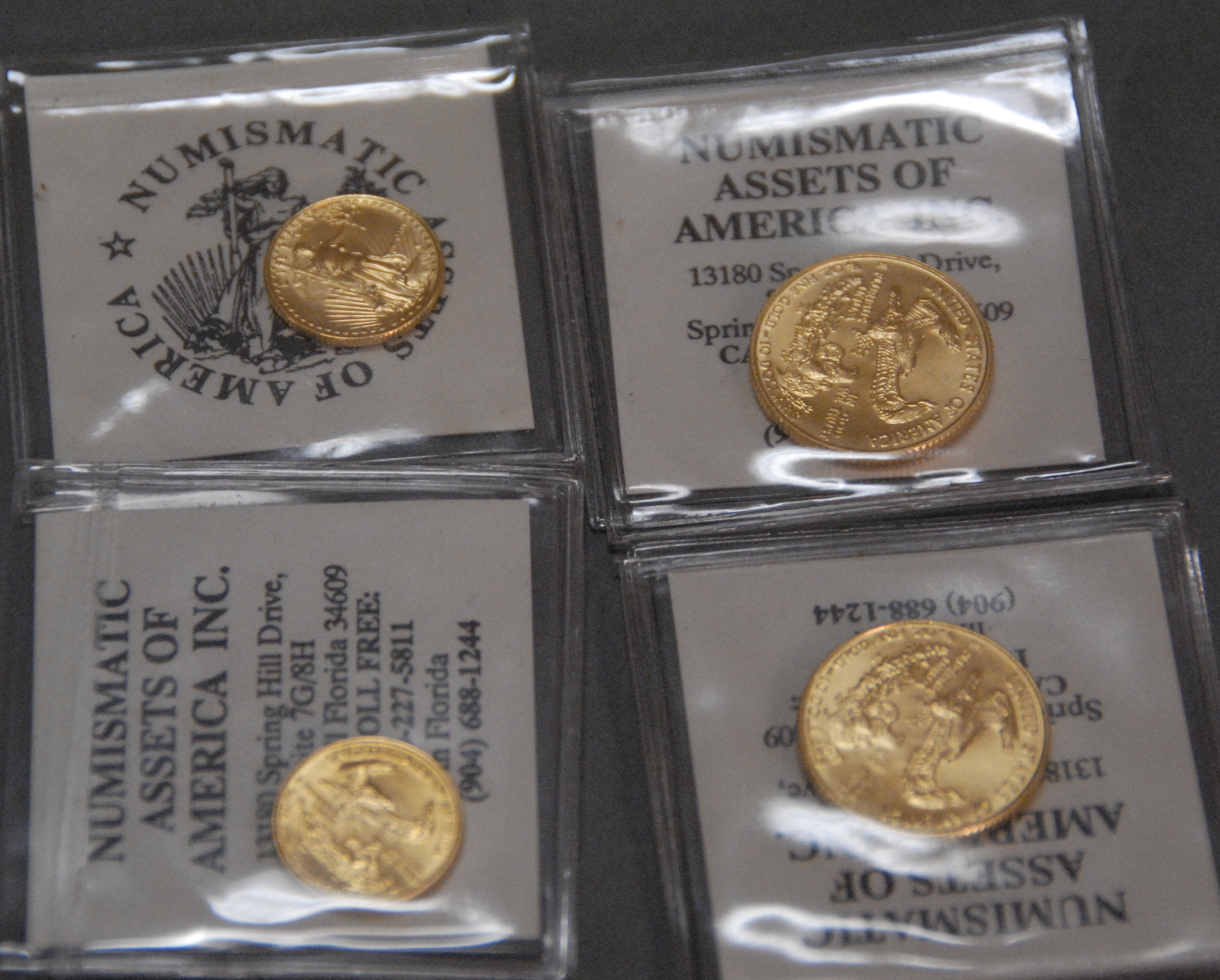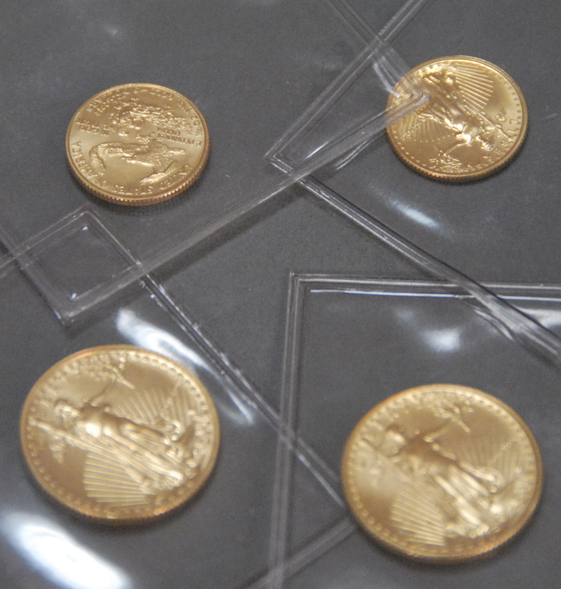 Four American Eagle coins two 1/10 oz. BU and two 1/4 oz. BU.