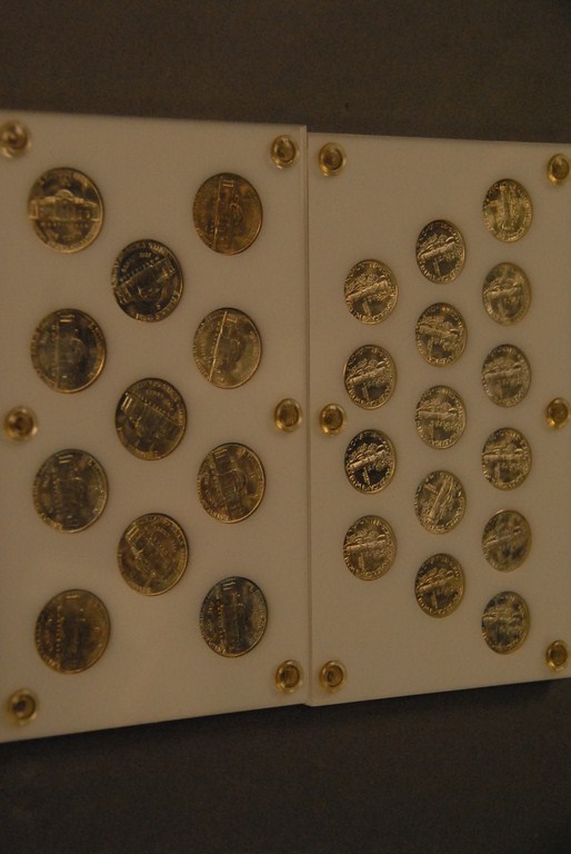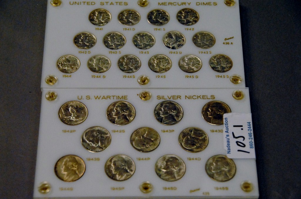 Lot 105I: Two sets War time nickel set in Capital holder 1942 through 1945-S all BU, and partial Mercury dime set 1941 through 1945-S all BU….
